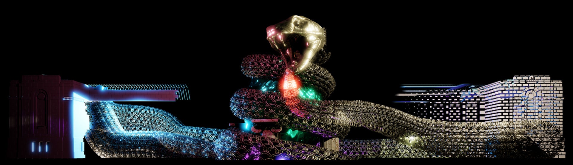 古代神話の象徴的存在でもある「ウロボロス」がモチーフ。尾を食べる蛇は、始まりも終わりもないリンクを表し、永遠の循環、再生や無限、終わりなき繋がりなどを意味しています。世界や自然、生と死などとリンクし、人間はいかに世界と繋がるべきかを問いかけます。