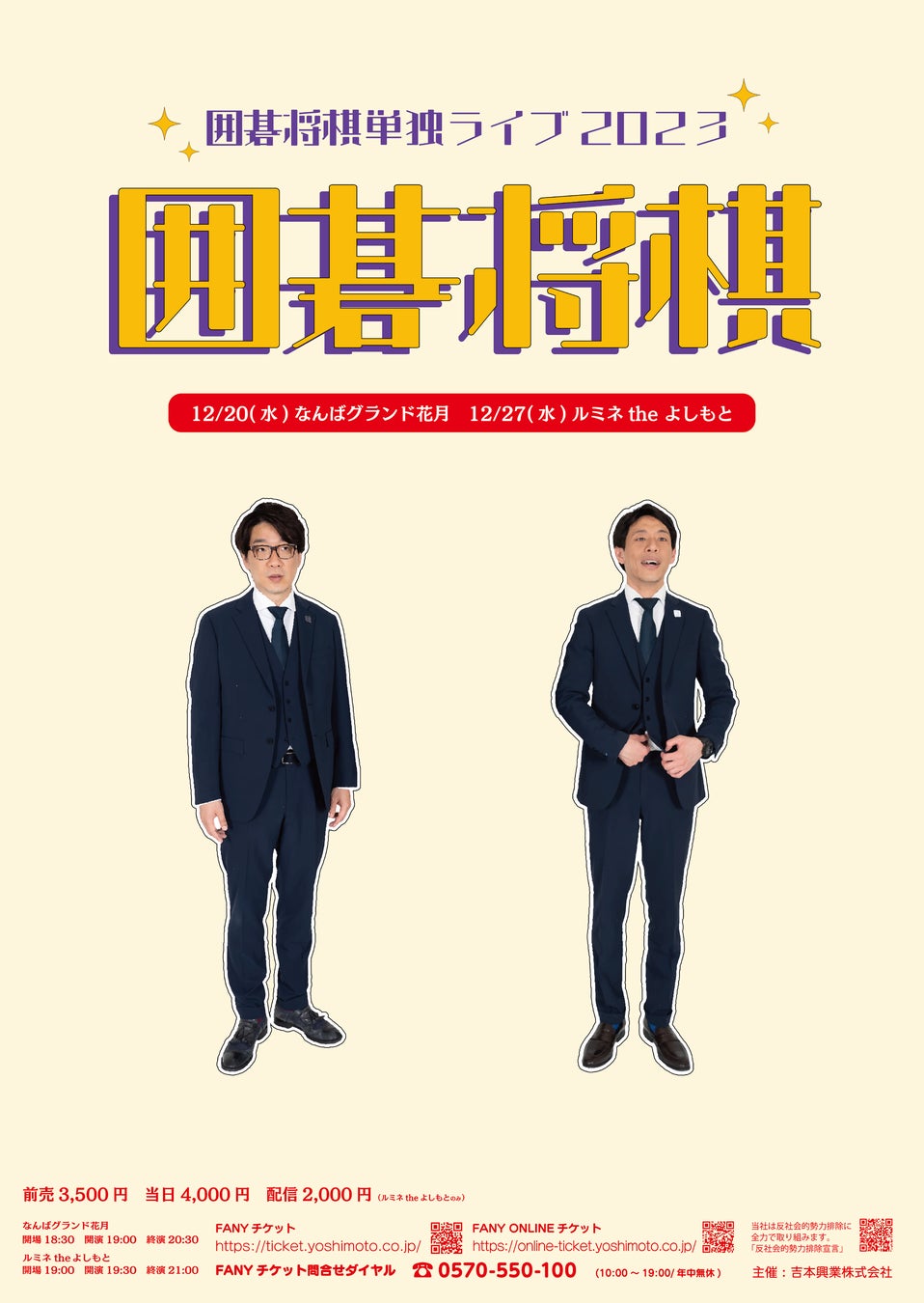 このたび吉本興業所属、芸歴20年目の囲碁将棋によるTHE SECOND以降初の単独ライブ「囲碁将棋単独ライブ2023『囲碁将棋』」を開催することが決定いたしました!