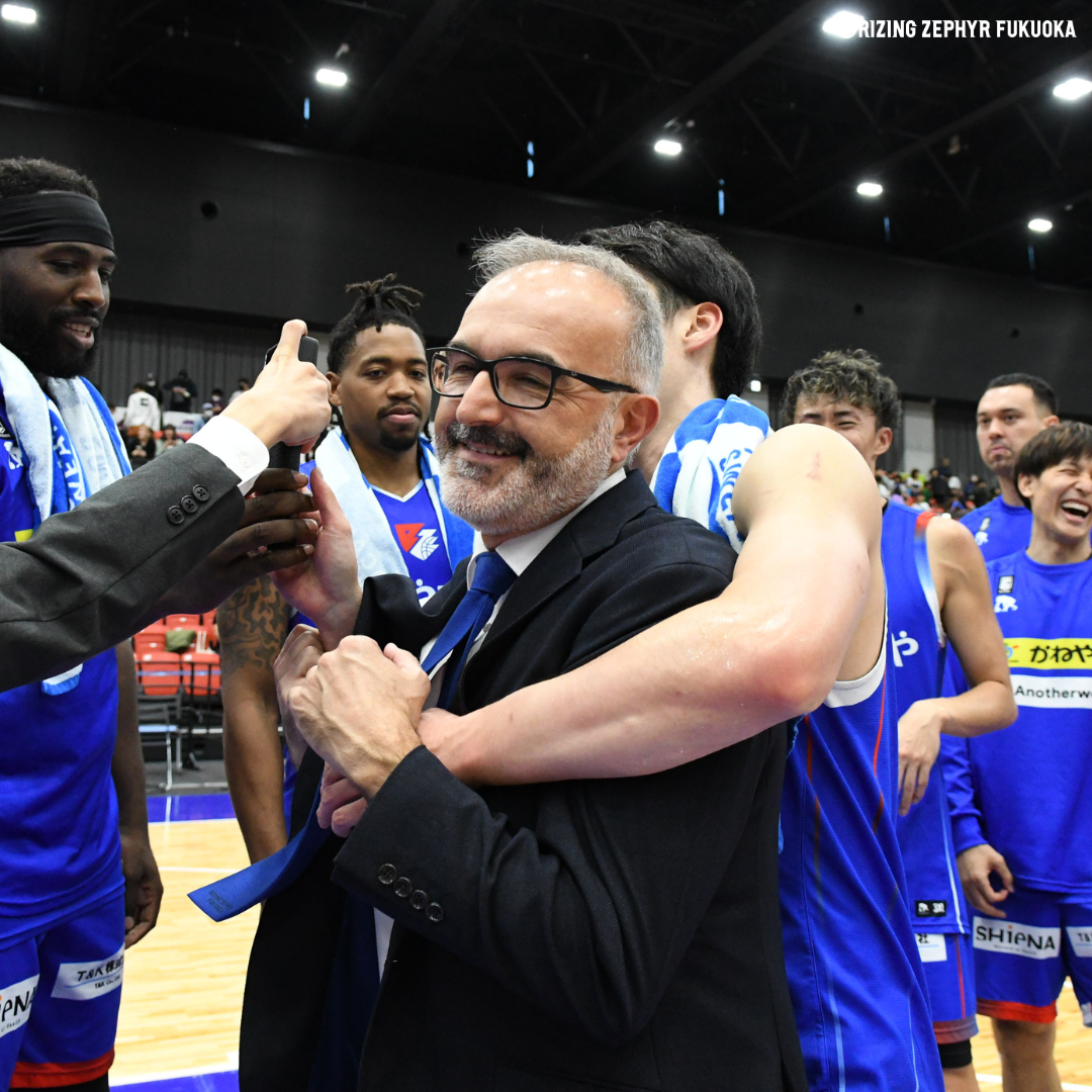 本日は飯塚にお越しいただき、ありがとうございました。とてもいい雰囲気の中でプレーすることができました。 全員がボールをシェアして試合に臨めたので、アシストも27本といい数字が出ました。3Pシュートについては、どちらも確立が高かったことに驚いています。我々のチームもいいシチュエーションで打てたので、高いパーセンテージになったと思っています。今回もスリーポイントではなくてインサイドを狙っていたのですが、外が入ったので中でも攻めることができました。選手はいいセレクトをしていたと感じます。 今回のスタッツは毎試合必ず出るような数字ではありませんが(3Pシュートの確立 福岡=50%)、この6試合を見てきて3Pシュートはこれからも鍵になってくるのではないかと思います。伸ばしていきたいです。 今週の水曜日にもゲームがあり、その次は金曜日ととてもタフなスケジュールになっています。選手・スタッフ全員で力を合わせて勝利をつかみたいです。これからも応援よろしくお願いいたします。