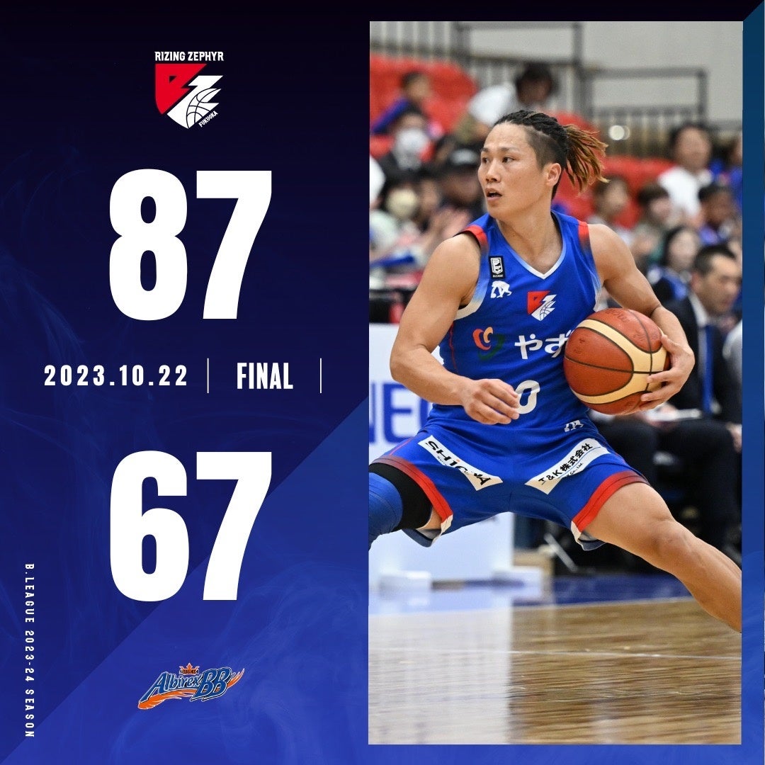2023年10月22日(日)に開催されました【ライジングゼファーフクオカvs.新潟アルビレックスBB】において“福岡87-67新潟”の結果となりましたことお知らせいたします。