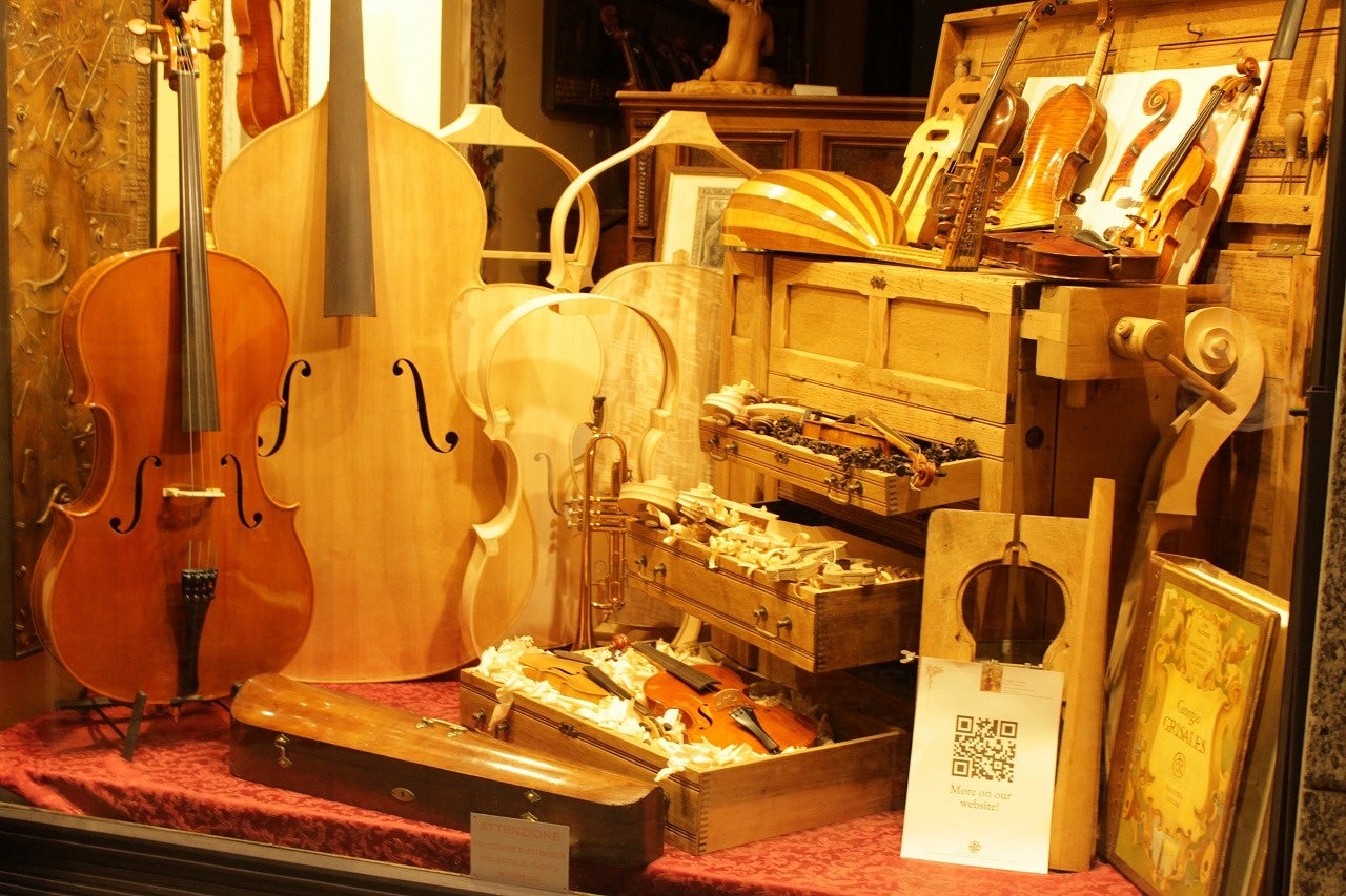 クレモナは著名な弦楽器製作家ストラディヴァリやグァルネリが活動を⾏った街として知られ、現在でも市内には数多くの弦楽器製作⼯房が存在し、過去の巨匠たちの作品を観ることができる博物館・次世代の製作家を育成するための製作学校の存在、レストランやお⼟産屋にはバイオリンそやモチーフが飾られていたりと弦楽器と⾮常に密接です。