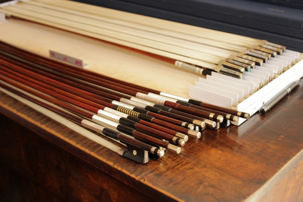 Slaviero氏の所有する数多くのフレンチ弓を拝見し、貴重なコレクションの一部を大阪梅田店でご紹介できることとなりました。機能的でエレガントなフランス弓をお楽しみください。