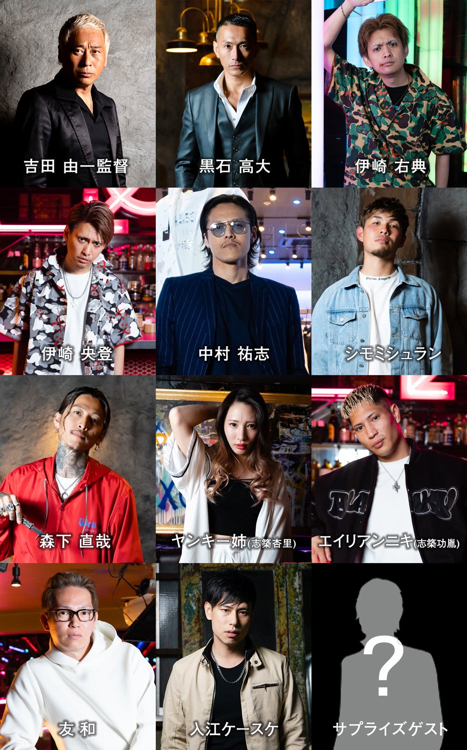 吉田 由一監督、黑石高大、伊崎右典、伊崎央登、中村祐志、シモミシュラン、森下直哉、ヤンキー姉(志築杏里)、エイリアンニキ(志築功胤)、友和、入江ケースケ、サプライズゲスト