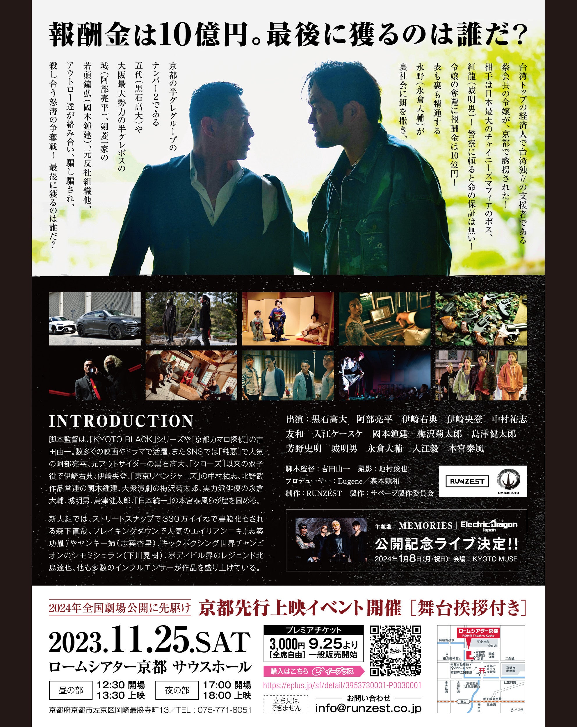 今回この作品の上映と共に、豪華俳優陣が出演する舞台挨拶、主題歌「MEMORIES」のElectric Dragon Japan(エレクトリック・ドラゴン・ジャパン)によるライブなどを予定しています。
