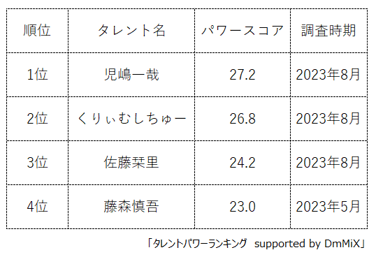 本ランキングは、2023年8月度に実施したタレント調査データ(一部過去実施データ)を利用し、タイトルに応じてランキング形式でまとめたものです。