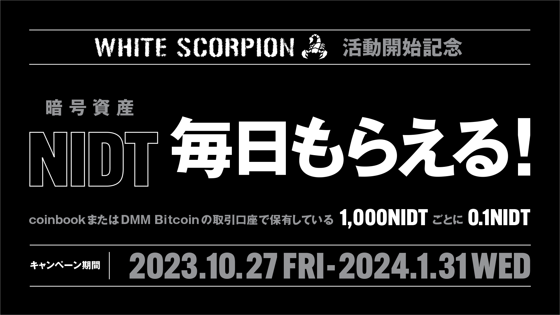 株式会社オーバース(本社:東京都千代田区、代表取締役:佐藤 義仁 以下「当社」)は、当社が運営し10月7日に誕生したばかりの新規アイドルグループ「WHITE SCORPION(ホワイト スコーピオン)」の活動開始を記念し、当社が発行新規暗号資産であるNippon Idol Token(NIDT)の保有者に対してNIDTを毎日付与するキャンペーンを実施いたします。