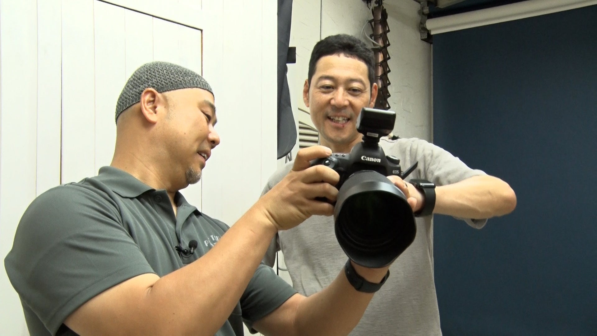 3人を出迎えた静岡県沼津市住みます芸人・ぬまんづ(うえたけ、原いい日)が案内したのは「つじ写真館」。アニメ『ラブライブ!サンシャイン!!』の舞台ともなっている沼津市は、ファンの聖地巡礼で大きな経済効果を生んでいて、「つじ写真館」も聖地のひとつです。