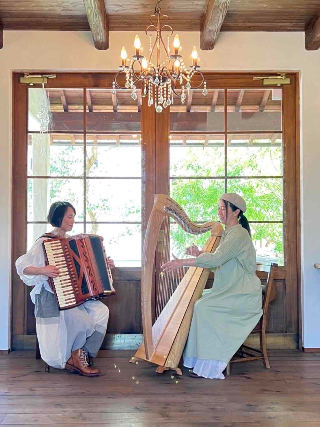 今回は、全国的にも珍しい アコーディオンとケルティックハープのデュオをお迎えします。