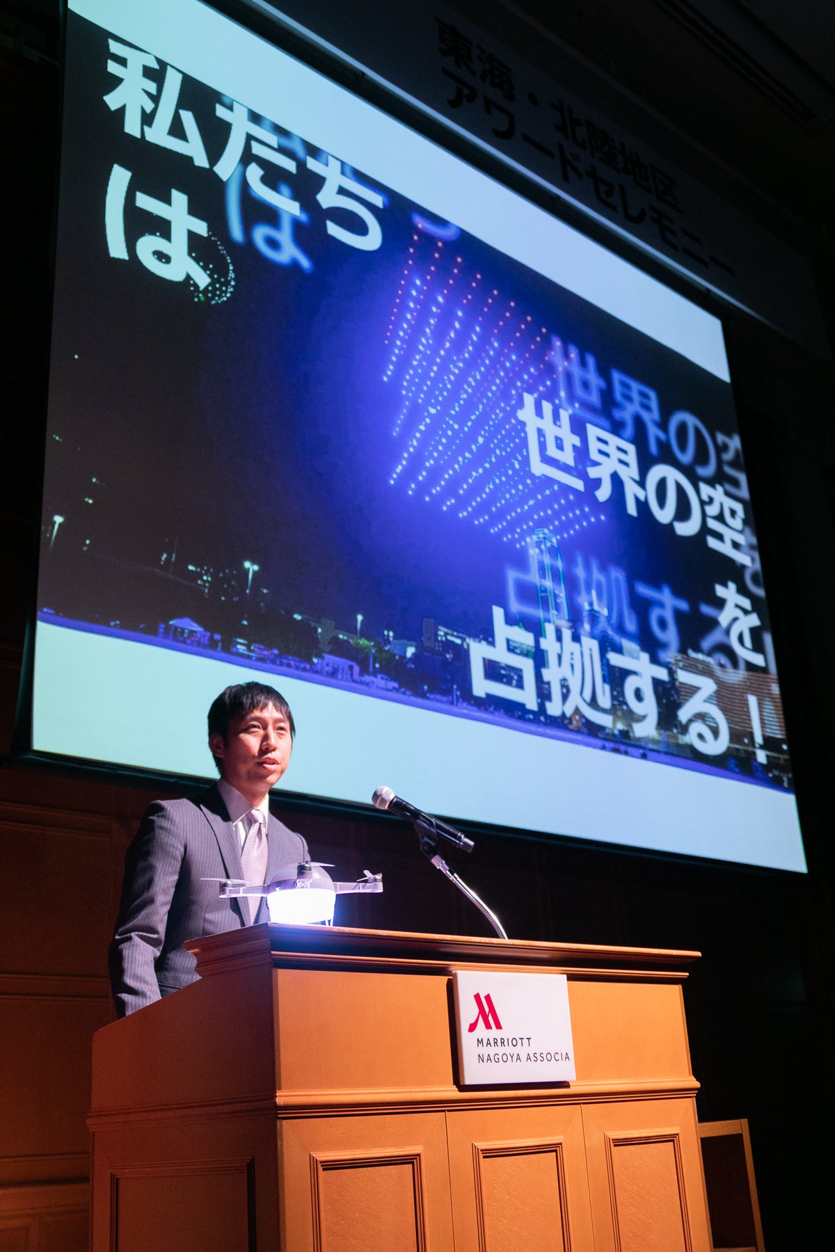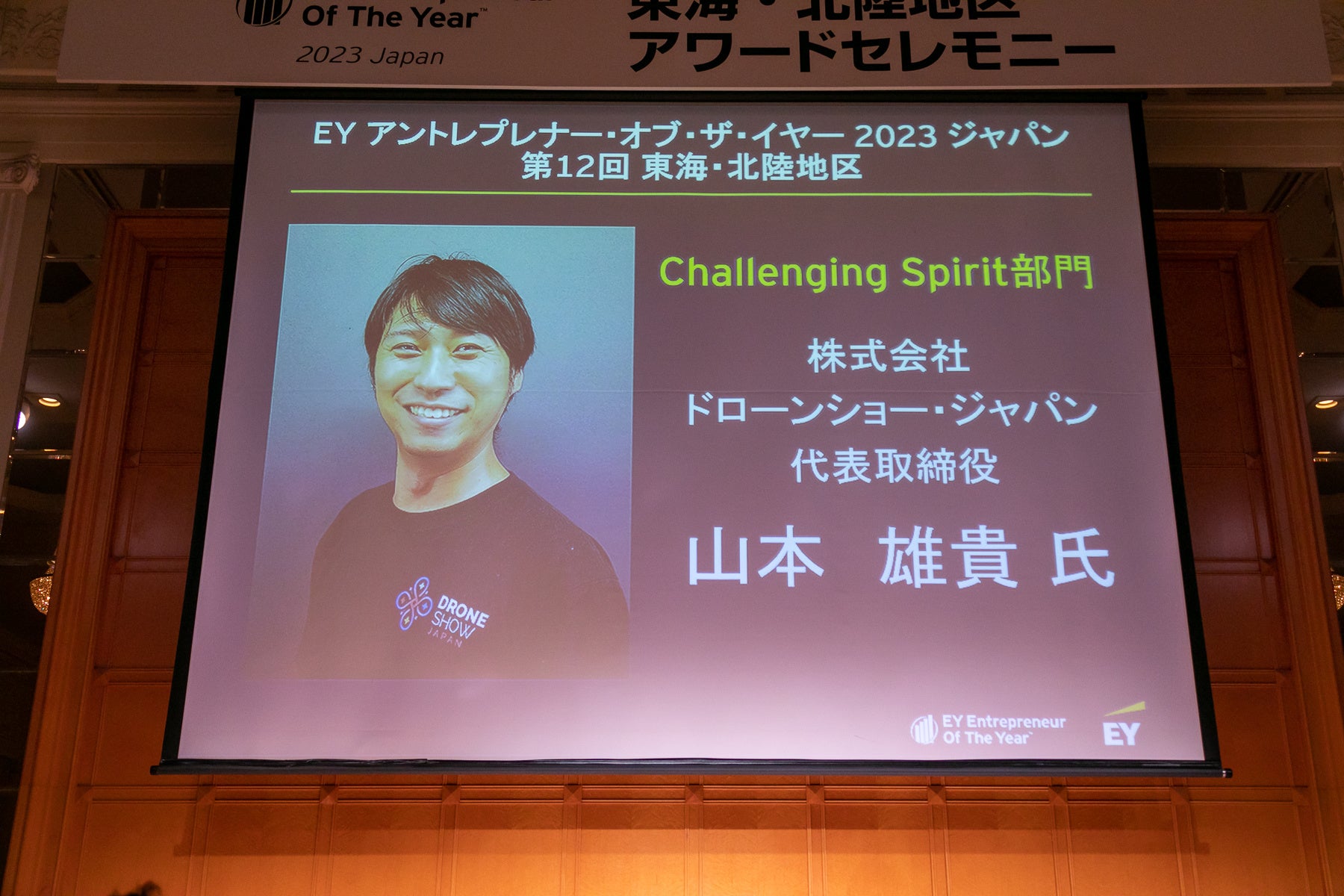 EOY JAPAN 2023 東海・北陸地区チャレンジング・スピリット部門の受賞に、大変大きな喜びと共に感謝の気持ちで胸がいっぱいです。この受賞は「誰もやっていないドローンショーをやりたい」という私たちの強い情熱と高いチーム力の証です。