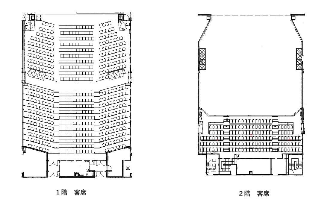 〇定 員:747名 (1階:最大589席 [581席+車椅子席6席または補助席] ・ 2階:158席)
