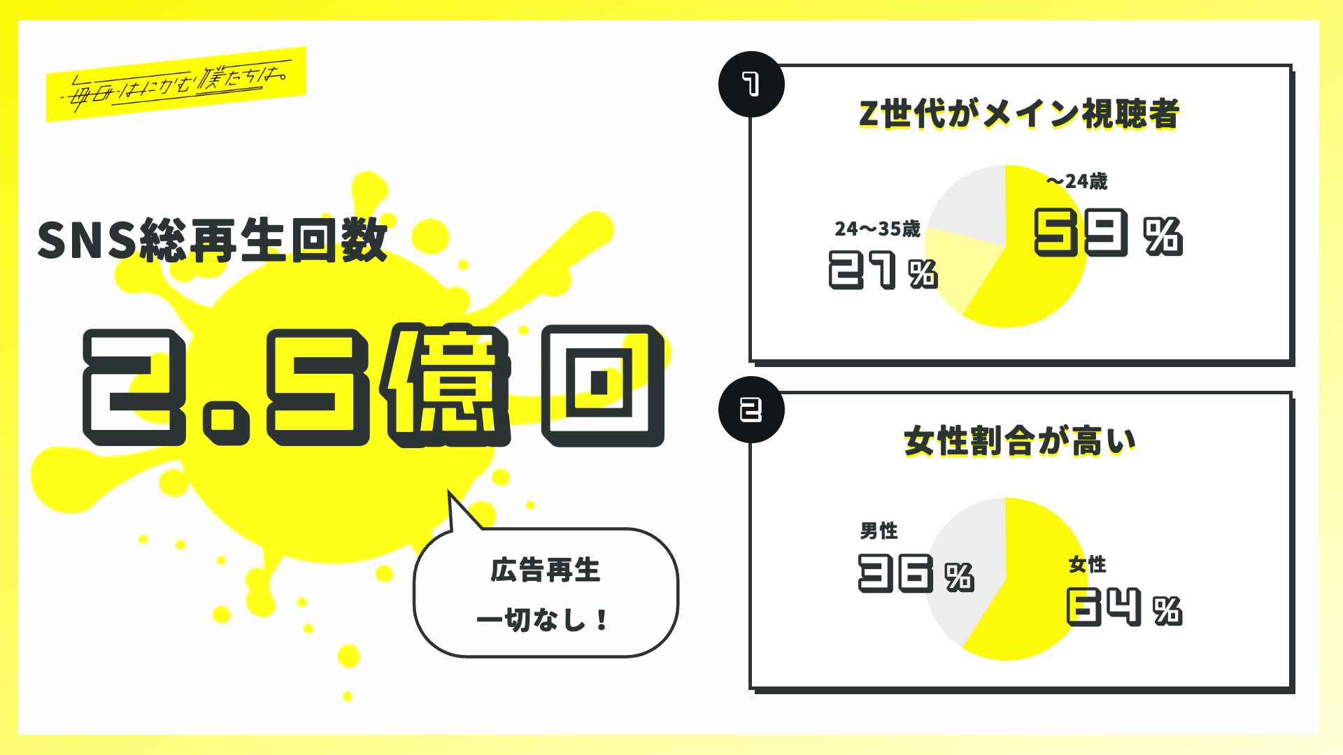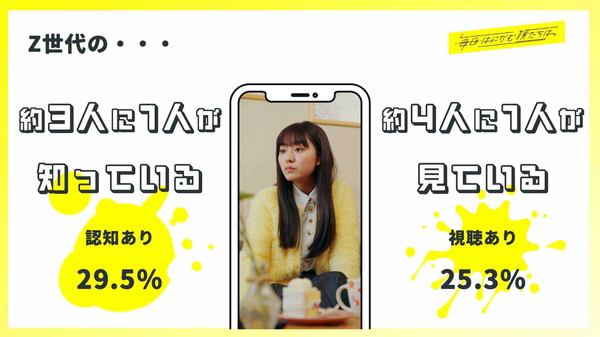 また、本作品のZ世代認知については29.5%、視聴経験については25.3%とアカウント開設7ヶ月ながら驚異的な数値を記録致しました。引き続き、若い世代を中心に多くの皆さんにお楽しみいただけるような作品を創り出して参ります。