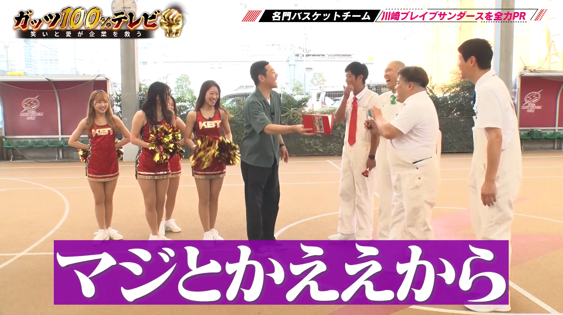 今回のクライアントは、日本のプロバスケットボールチーム「川崎ブレイブサンダース」です。ゲストのガッツ芸人はもう中学生、そしてMCは、彼らの大先輩であり、BSよしもと宣伝局長でもある東野幸治が務めます。