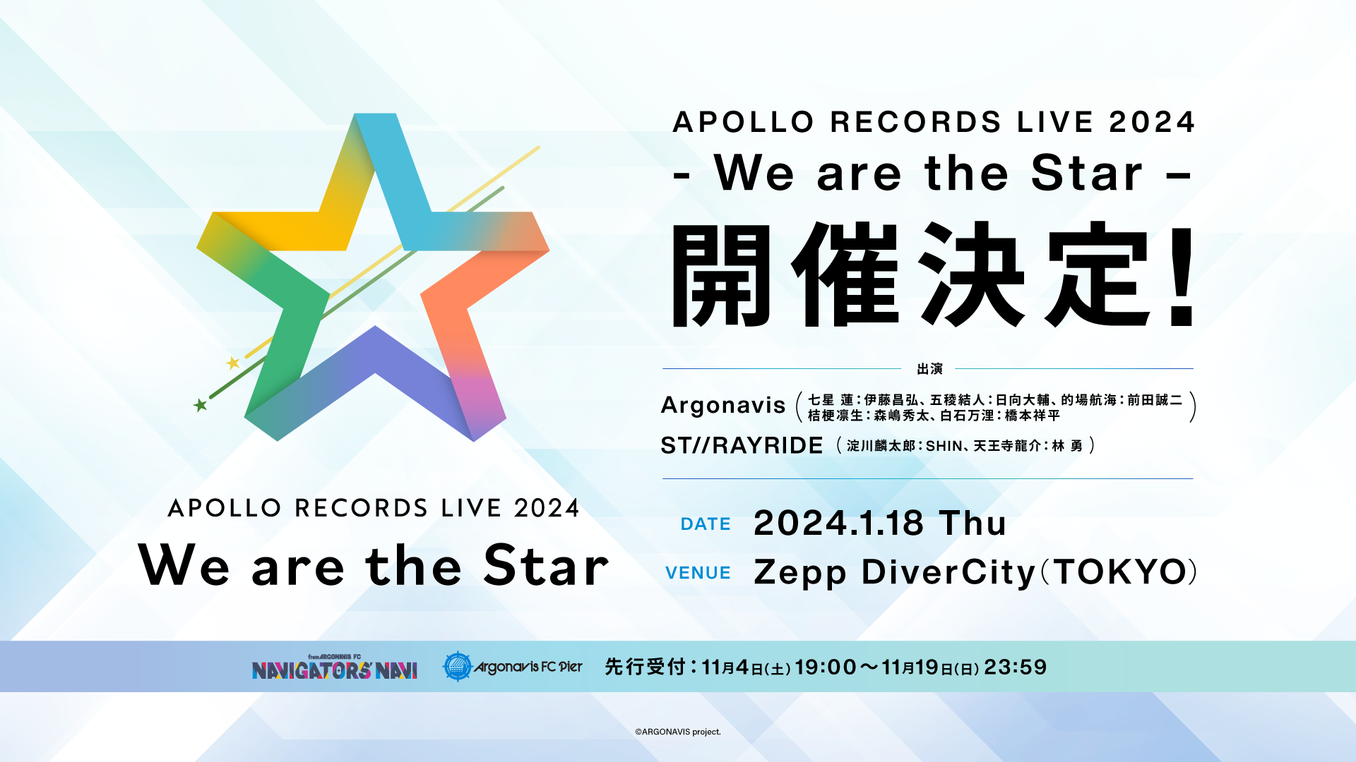 Argonavis・ST//RAYRIDE出演ライブ開催決定! 本日より11月19日(日)23:59までFC先行実施。