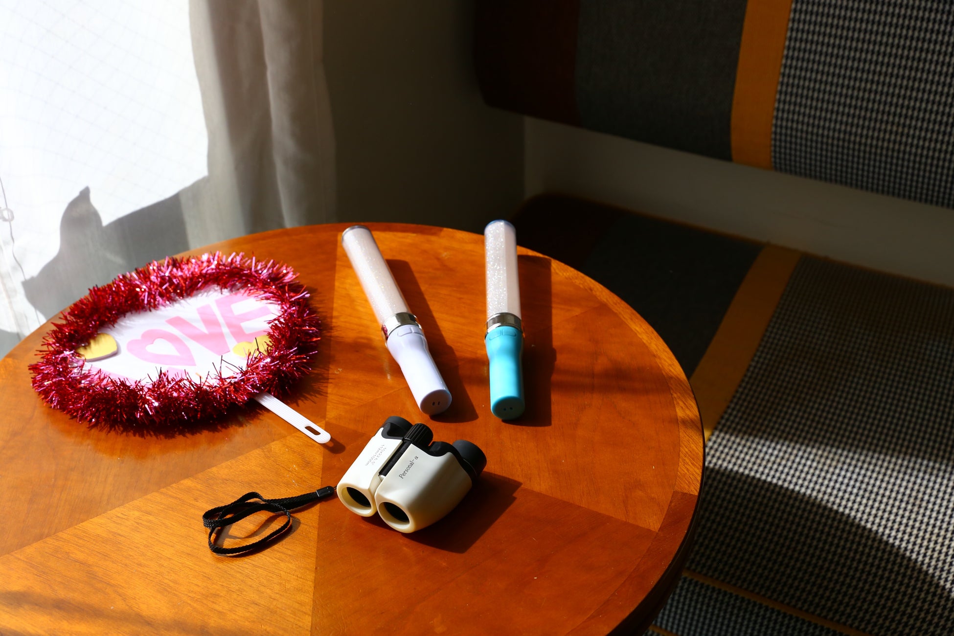 貸し出しアイテム:ペンライトスタンド、うちわスタンド、アクリルスタンド台、ぴあアリーナMM特製撮影用背景
