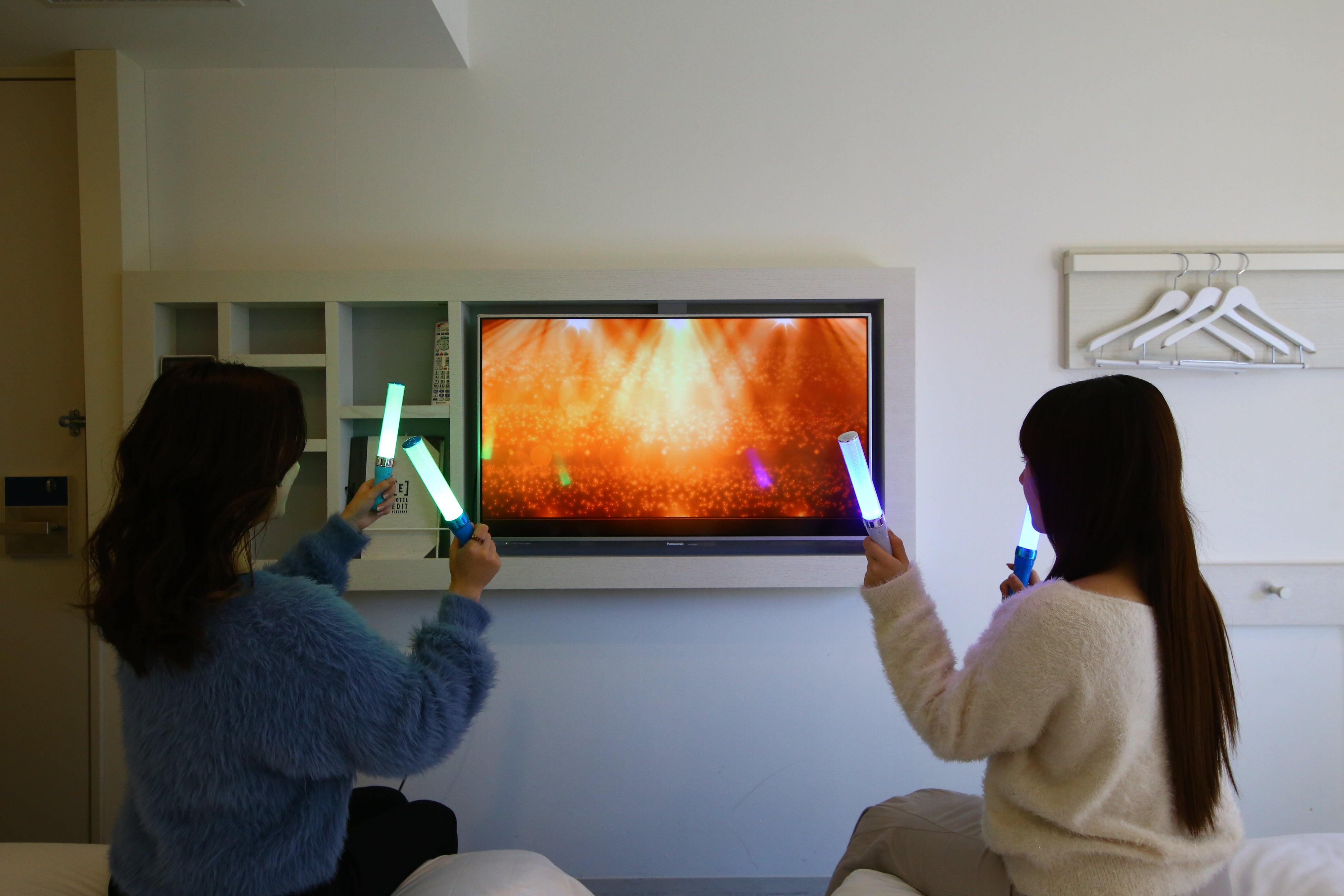 同プランの客室限定で、ご宿泊客室のテレビ画面でご自身のスマートフォンを繋いで推し関連コンテンツをご覧いただける環境をご用意します。