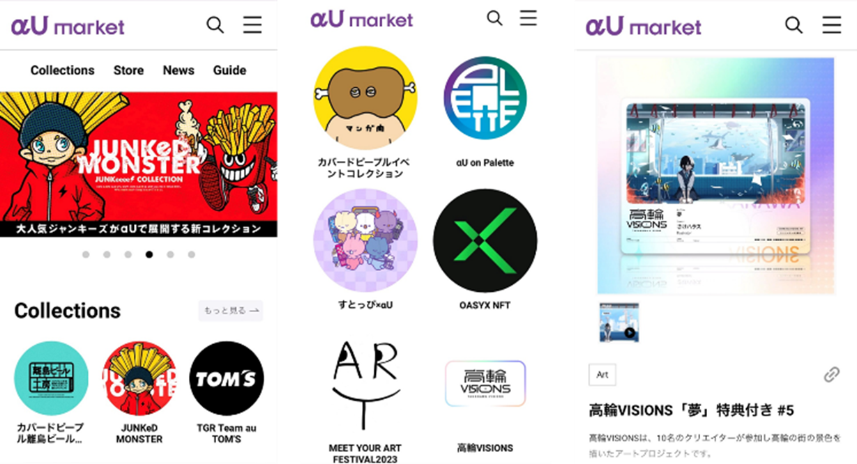 NFTになじみのない方でも簡単に楽しめるNFTマーケットプレイス「αU market」では、今までに有名アーティストやクリエイターとコラボしたNFTや、持っていると特典が受けられるNFTなど、幅広いラインアップを展開してきました。