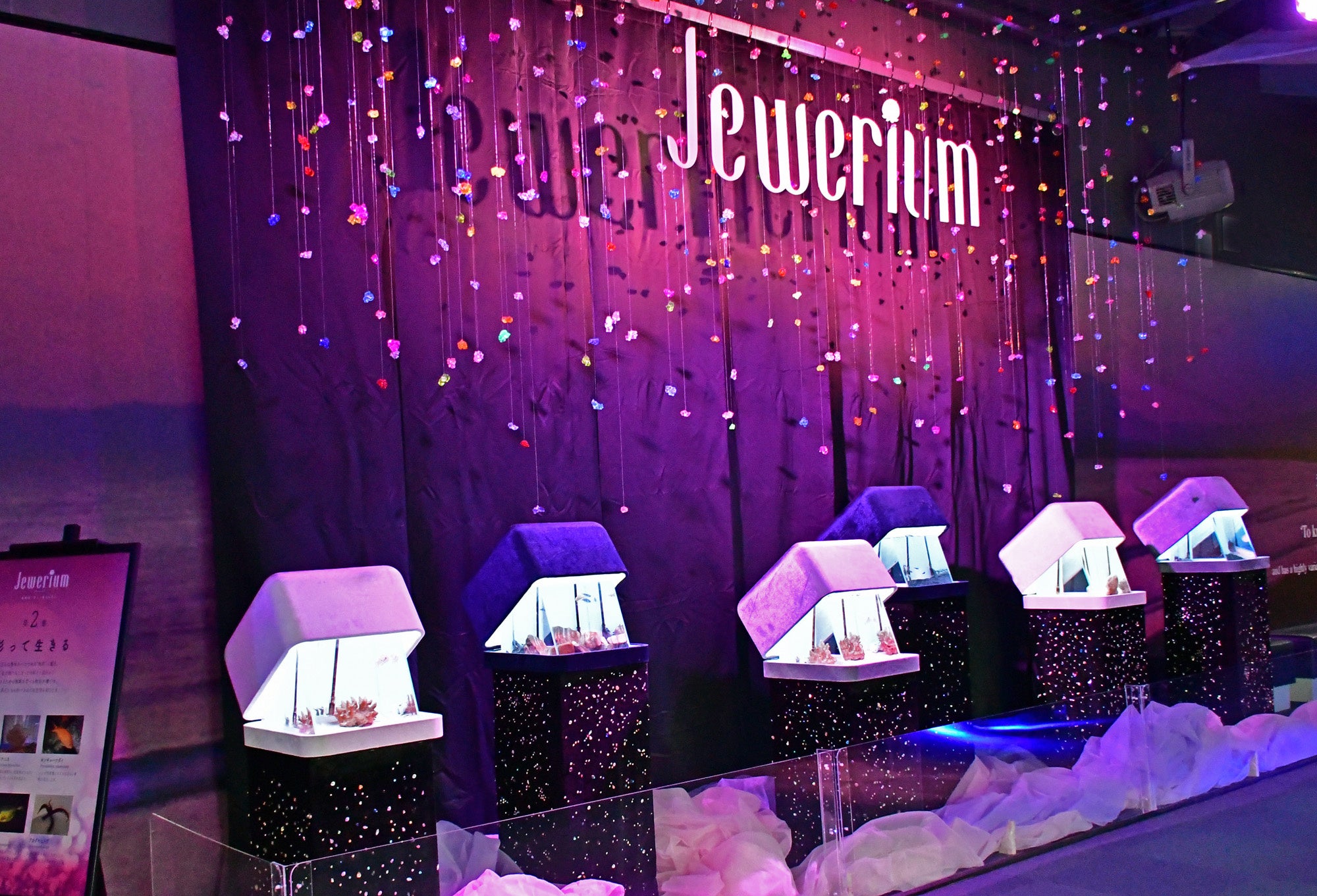 「Jewerium」とは、宝石“Jewel”と水族館“Aquarium”を 組み合わせた“えのすい”独自の合成語で、宝石がもつ 3 つ の要素 “透明感”、“色彩”、“輝き” をテーマに、海の中で輝きを放つ生き物たちと美しい館内演出の融合をお楽しみいただけます。