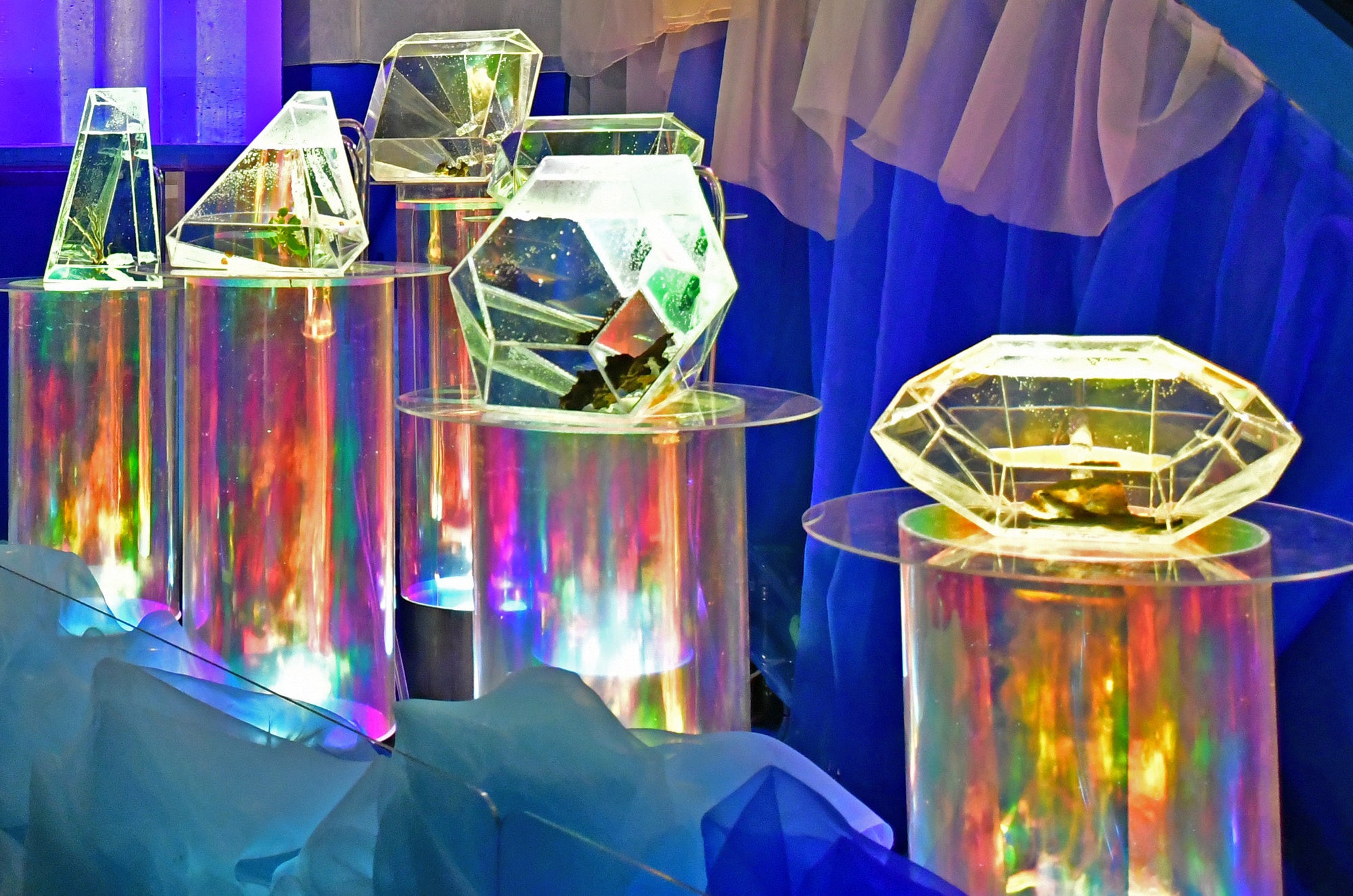 成長を遂げ、輝きを放つ宝石たちのように、グラスの中で輝く生き物たち。 Jeweriumであなただけの輝きも見つけられたはず。そんな輝きの1 日を記録するフォトスポットです。グラスツリーと最高の輝きをお持ち帰りください。
