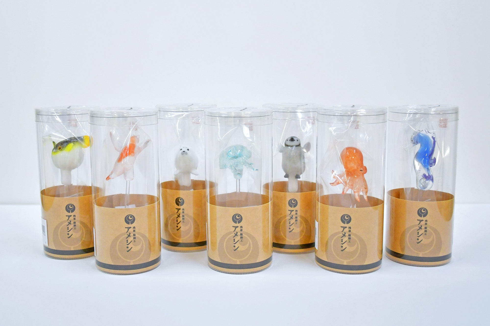 浅草にある日本随一の技術を誇る 伝統飴細工専門店「アメシン」がつくる、まるで宝石のような海の生き物たちが、メインショップを彩ります。