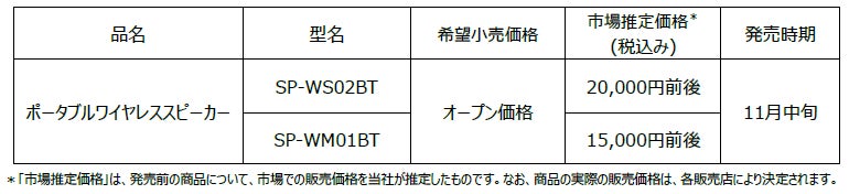 ポータブルワイヤレススピーカー「SP-WS02BT」「SP-WM01BT」を発売