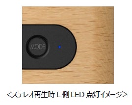 両モデルとも拡張機能として、ステレオペアリング機能に対応し、同一機種を1台増設することにより、セパレートコンポのような広がりのあるステレオ再生が楽しめます。同機能は、天面のモード専用ボタンで簡単にON/OFFが可能です。なお、同機能使用時はL(左側:青)とR(右側:赤)で異なる色のLEDが点灯するため、ひと目で分かります。