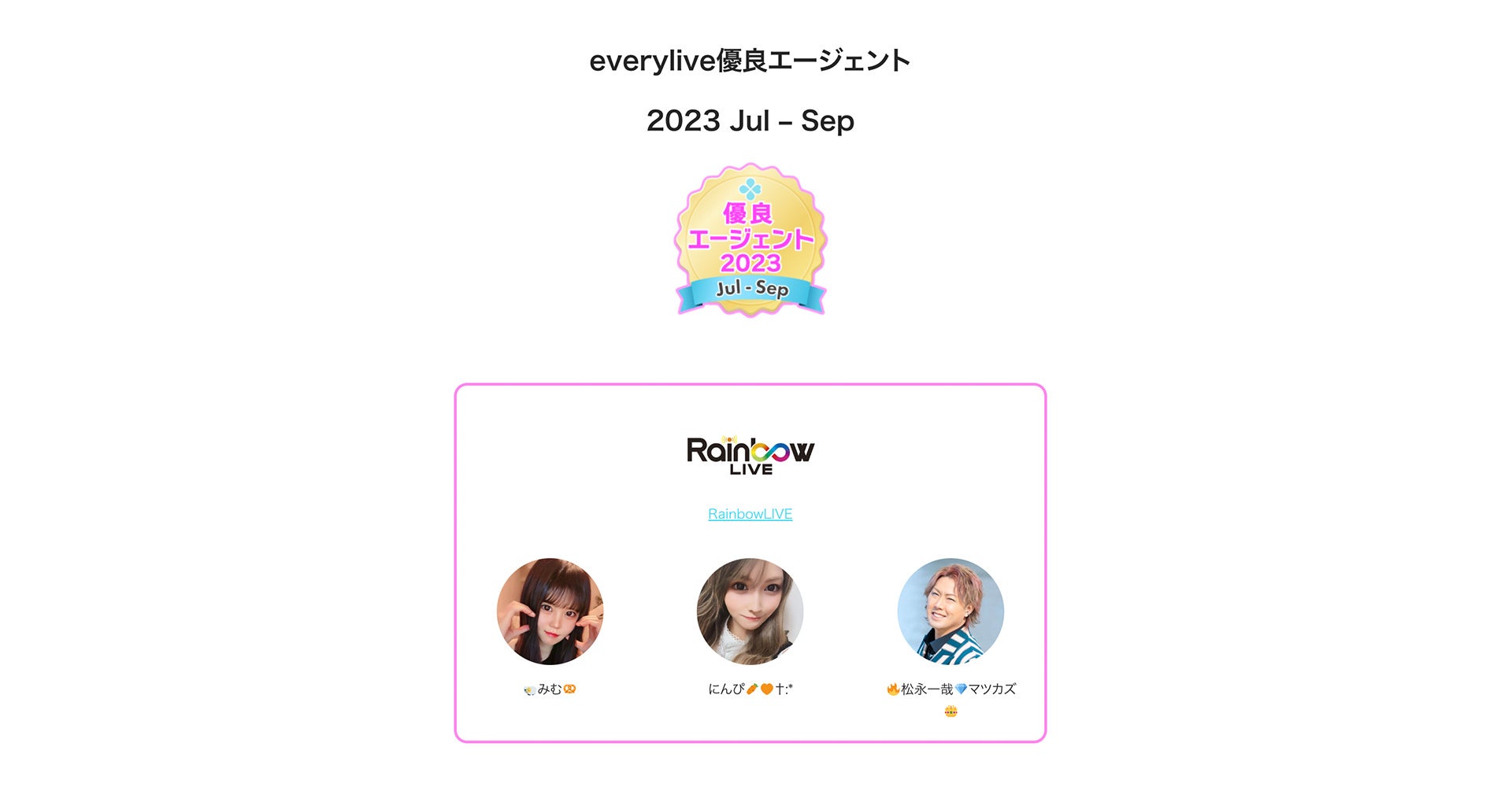 everylive参入わずか半年で優良エージェントTOP3入りを果たし、2022年7月から10月度から今回が連続6度目の優良エージェント認定となり、唯一のトップランクを獲得しました。