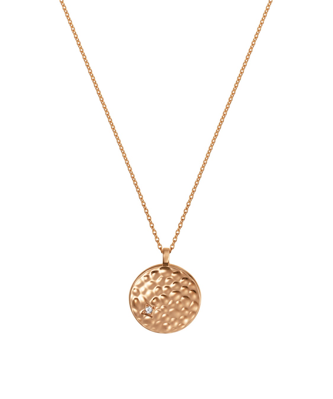 ラテン語で渚に寄せる波の意味を持つ“Aestus(アエストゥス)”。“渚”のイメージを、表面に施した槌目(つちめ)模様のテクスチャーで表現しました。ユニセックスでデイリーユースしやすい、シンプルで上品なデザインです。オンオフ問わず長くご愛用いただけるアイテムです。コインネックレスは、O.E.カットダイヤモンドまたは選べる誕生石をセッティング。そして2022モデル再販のバングルとのセットでのコーディネートもお楽しみいただけます。
