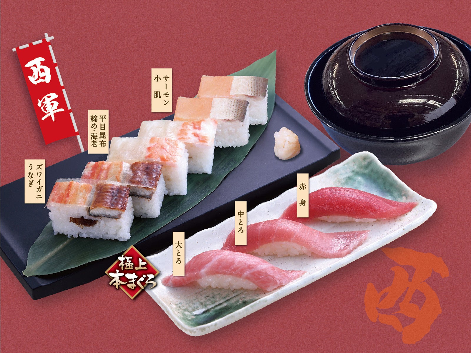 【東軍】匠のにぎりと本鮪三貫 VS 【西軍】押し寿司と本鮪三貫 *先着20食/日(1店舗あたり)