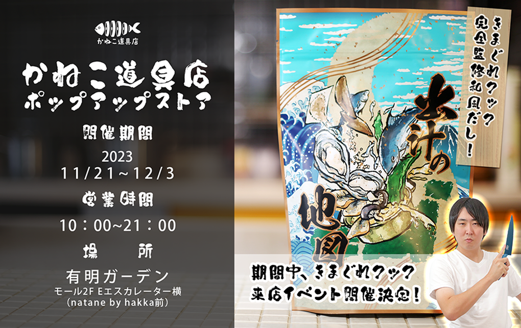 「きまぐれクック」がプロデュースする『かねこ道具店』の人気商品である出汁パック「出汁の地図」をポップアップストアにて販売致します。