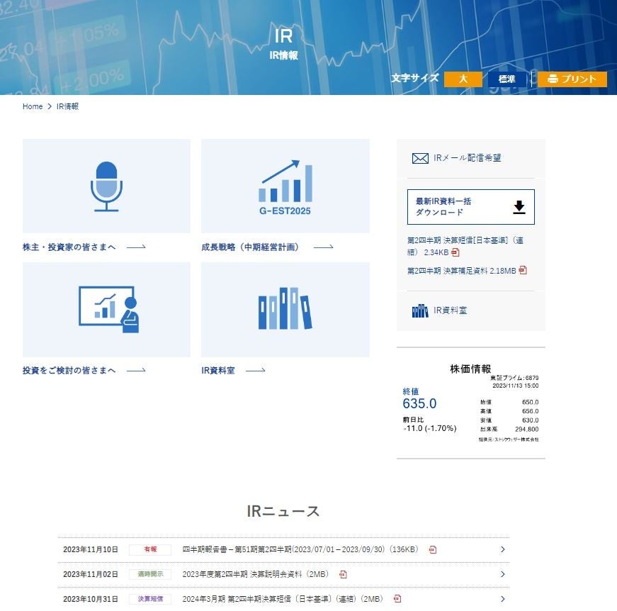 ・IRサイトの構成も個人投資家や初めて関心を持つ機関投資家が情報にアクセスしやすい。
