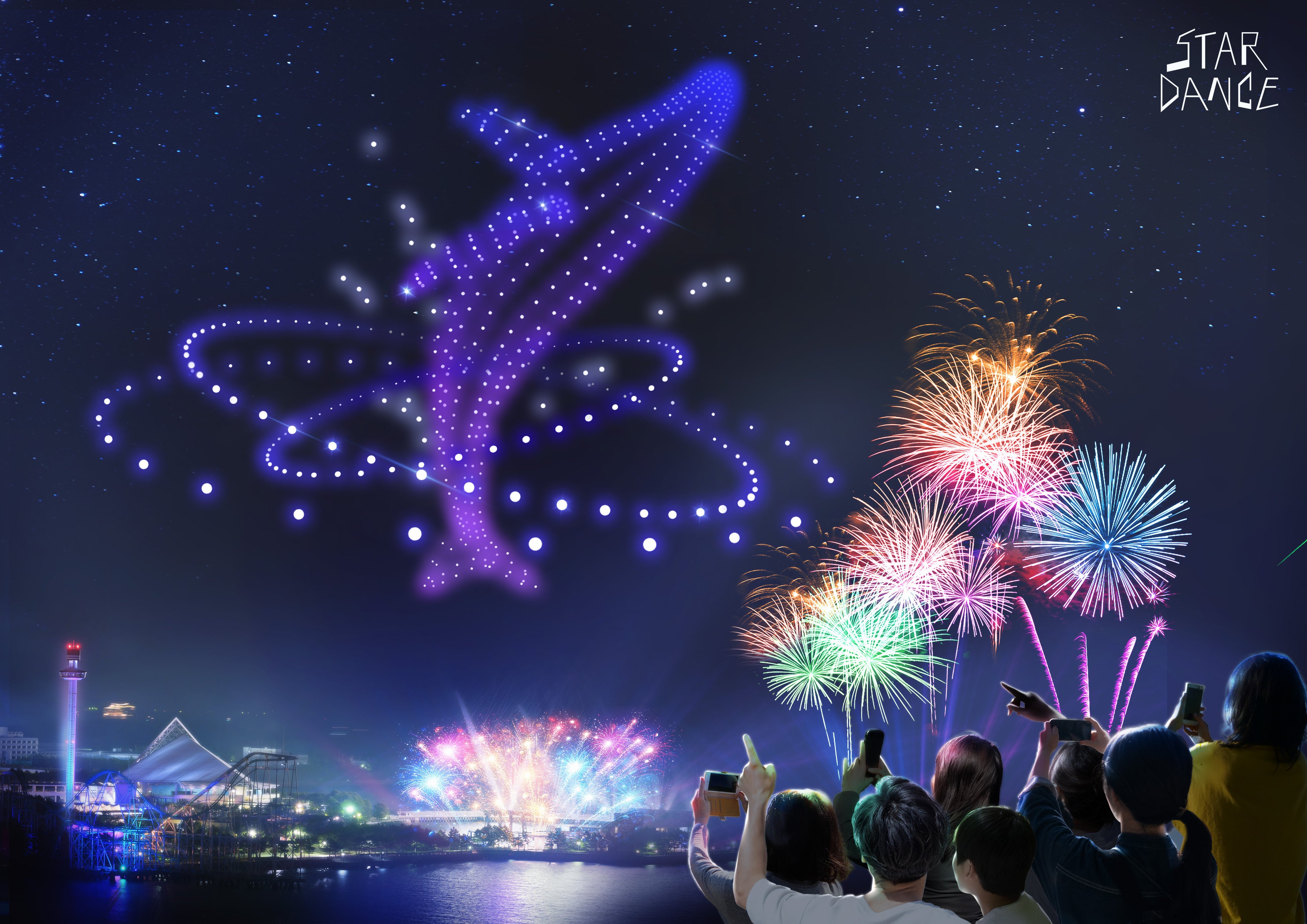 LEDを搭載したドローンを上空に放ち、ドローンの集合体によって様々なデザインを夜空に表現する「ドローンショー」。「STARDANCE in 横浜・八景島シーパラダイス」 では、ダイナミックな演出で夜空を彩り、見応えのあるドローンショーを披露します。