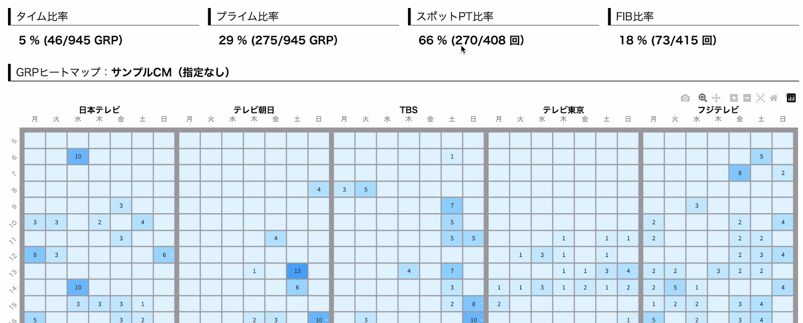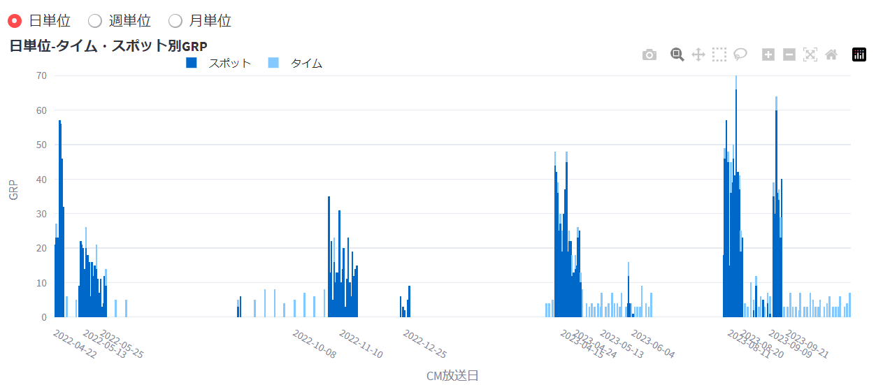 ●日別出稿量や、どの放送局のどの枠で放送があったのかも同時に把握できる