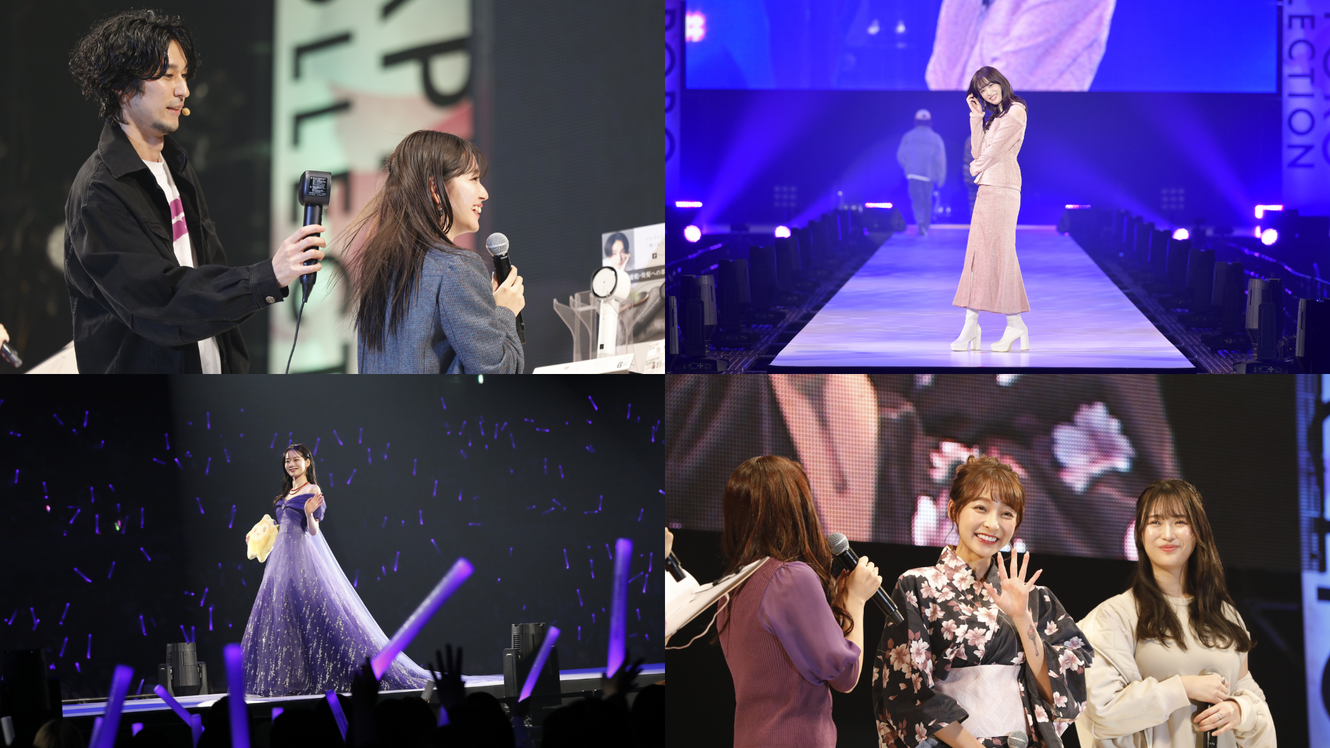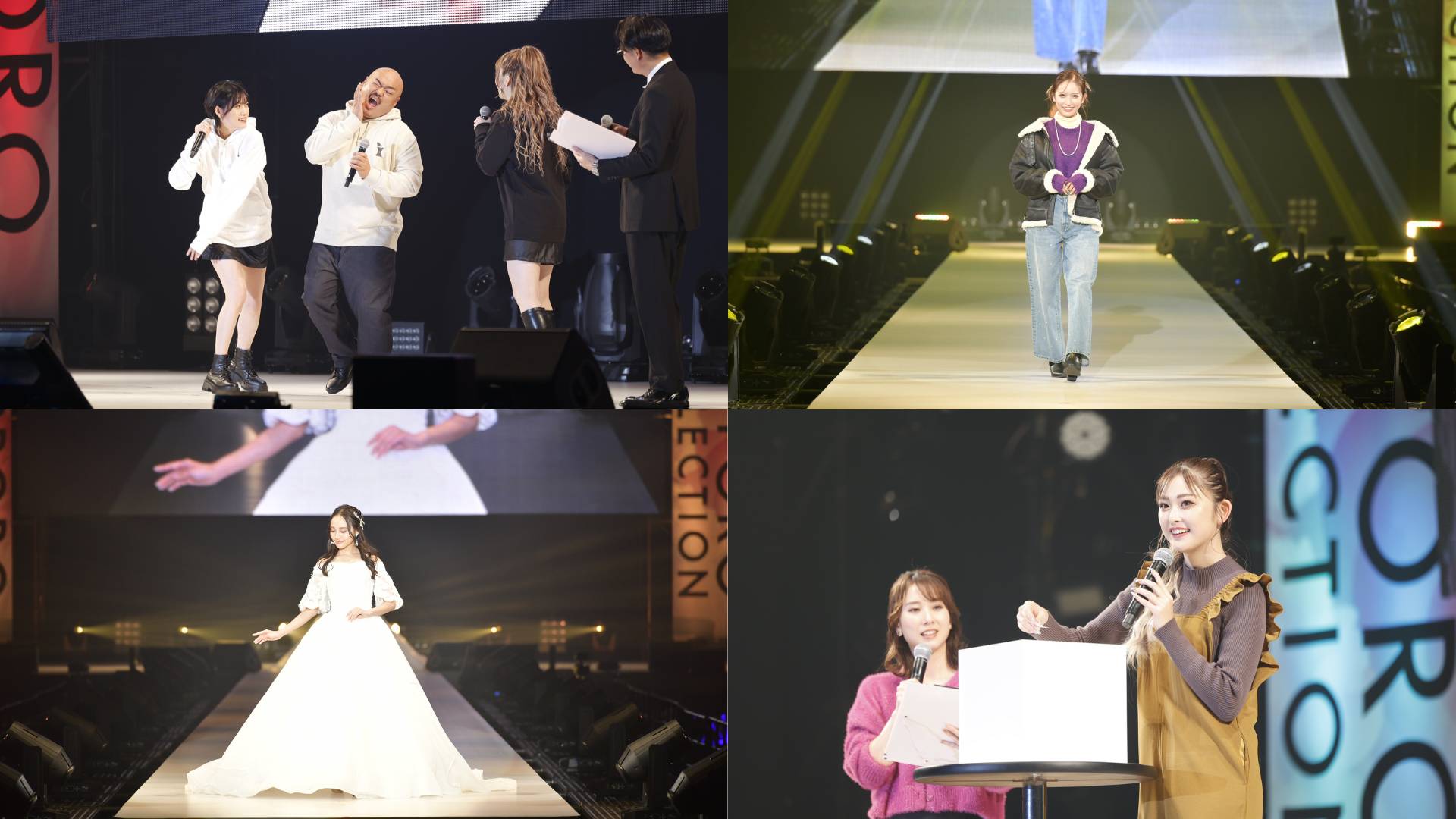 「LIP SERVICE STAGE」では、貴島明日香がウエスト部分にシアー素材を使用したセクシーなニットワンピースで抜群のスタイルを活かした圧巻のウォーキングを見せると、鈴木ゆうか、ゆいちゃみ、聖菜、松川菜々花、小室安未らがシックなモノトーンコーディネートで大人っぽい表情を見せました。
