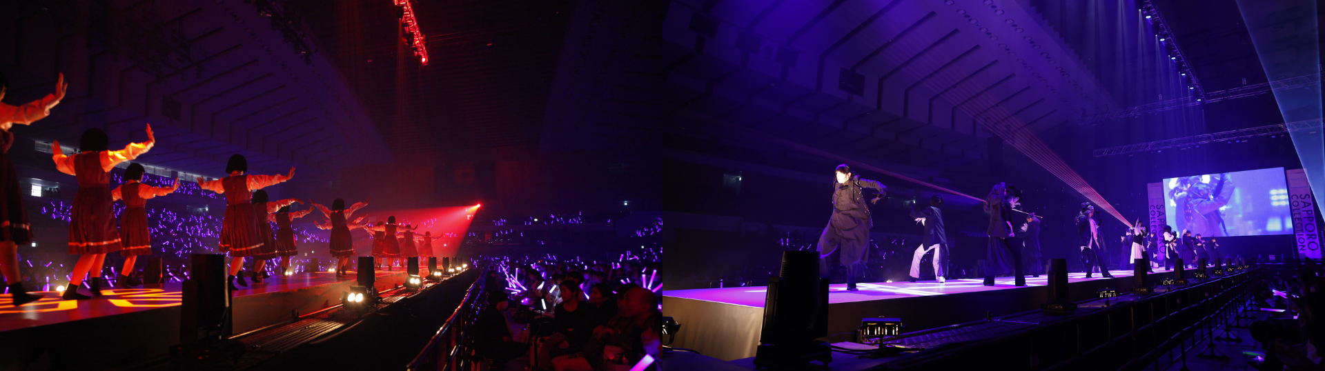 オープニングアクトのトップバッターをつとめたのは、2023年8月1日にデビューしたアイドルグループ昼夜逆転。開幕前の客席に笑顔いっぱいのステージングを届けました。1年ぶり2度目の出演となった歌って踊る5人組エンターテインメントグループBANQUET(バンケット)は、雰囲気の異なる2曲で会場も巻き込みながら熱いパフォーマンスを披露しました。続くタイトル未定は北海道札幌市を拠点に活動する4人組の女性アイドルグループ。疾走感あるメロディに乗せて魅力が真っすぐに伝わるステージングを見せました。最後に登場したのは、元まねきケチャの深瀬美桜がプロデュースした6人組女性アイドルグループのOnephony(ワンフォニー)。ダンスのソロパートを含む元気いっぱいのパフォーマンスで会場のボルテージを高めました。
