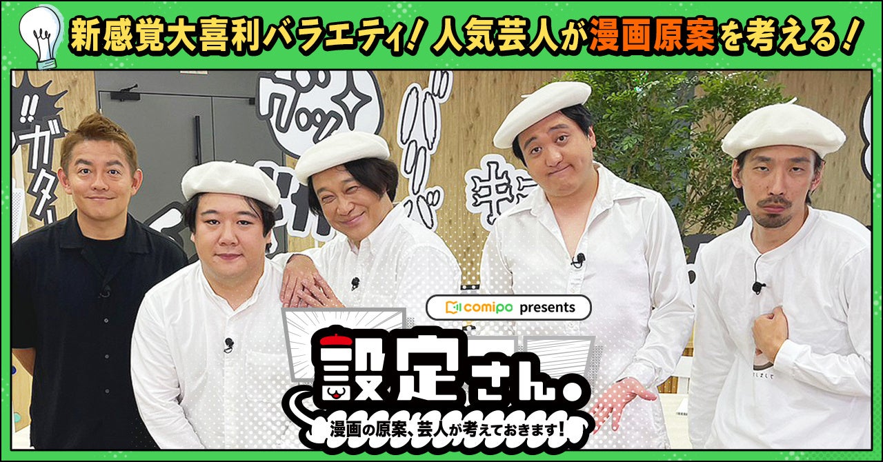 漫画アプリ『comipo』が主催する『設定さん。~漫画の原案、芸人が考えておきます!~』は、ネタづくりのプロであるお笑い芸人たちがお題に沿って大喜利で漫画の設定を考え、その設定を元にした漫画を公募する新感覚の漫画賞プロジェクトです。