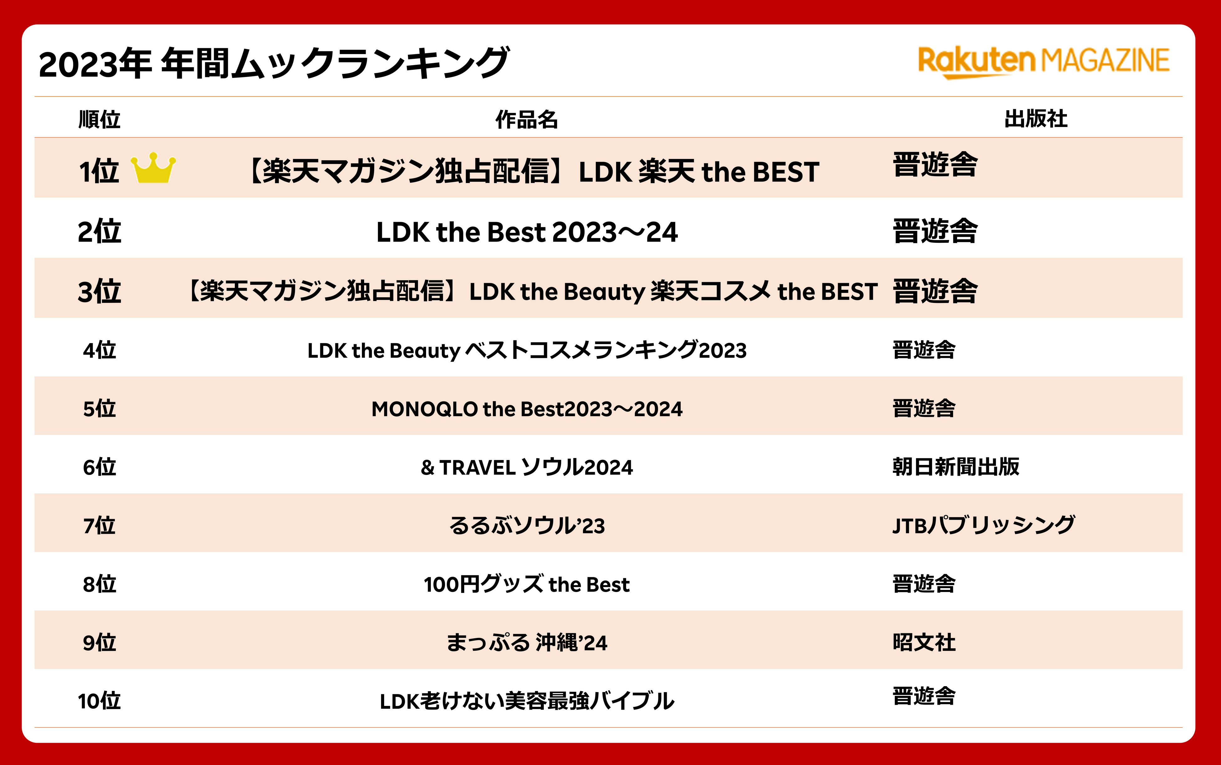 ・「楽天マガジン」2023年 年間ムックランキング
