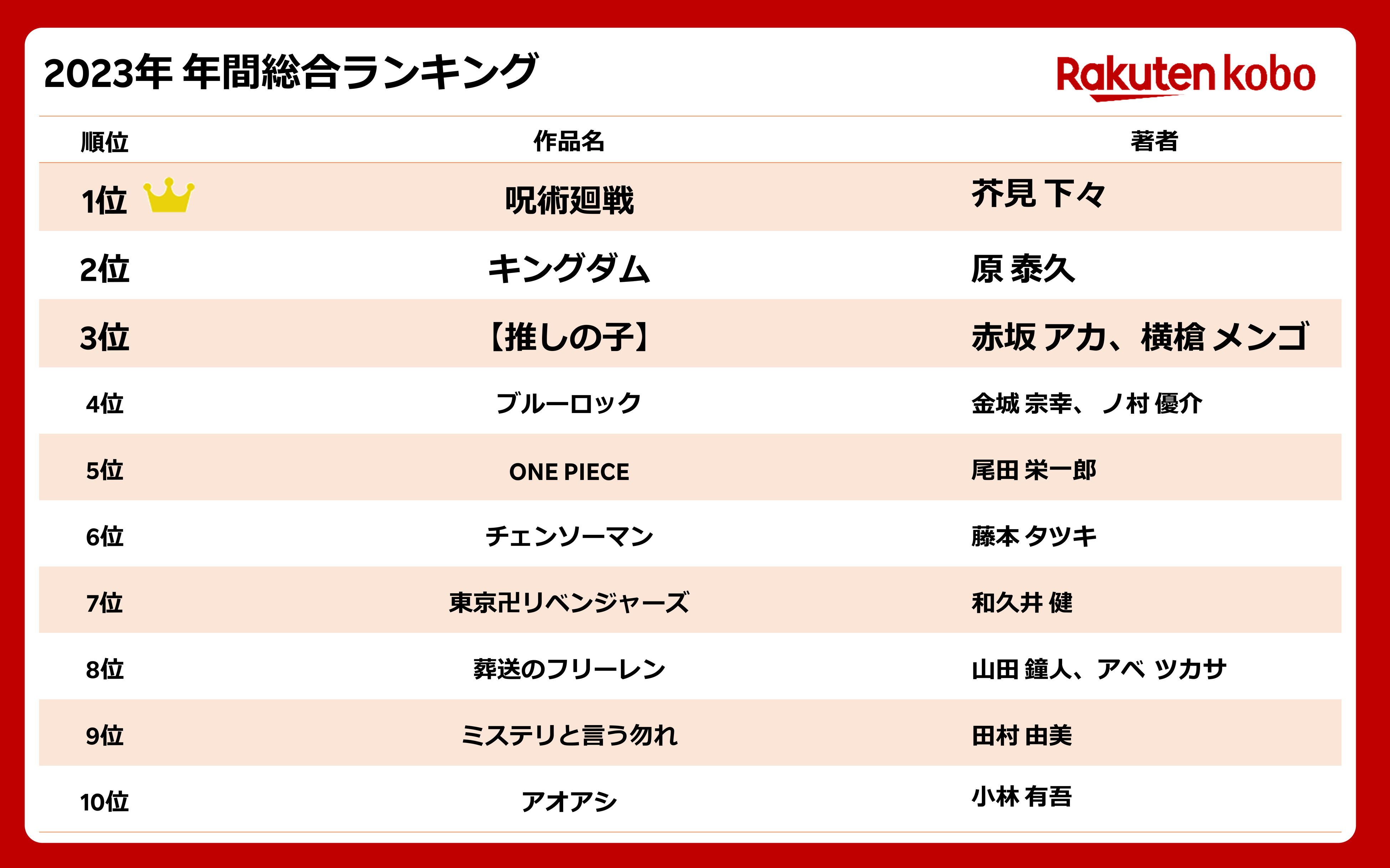 ・「楽天Kobo電子書籍ストア」2023年 年間総合ランキング
