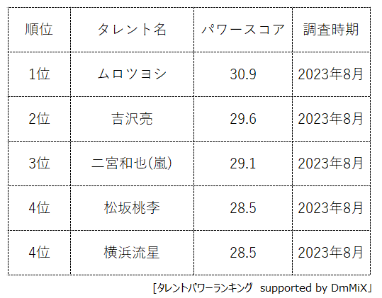 本ランキングは、2023年8月度に実施したタレント調査データ(一部過去実施データ)を利用し、タイトルに応じてランキング形式でまとめたものです。
