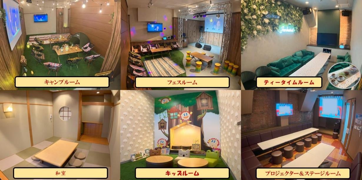 家具や内装にこだわり落ち着いた大人の雰囲気を味わえる「ティータイムルーム」や、畳敷きの「和室」等、老若男女問わず気分やシチュエーションに合わせてお楽しみいただける人気の全9種9ルームをご用意しております。