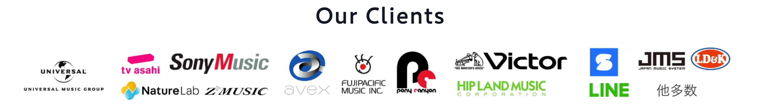 ユニバーサルミュージックジャパン、ソニーミュージック、エイベックス、ビクターエンターテイメント、ポニーキャニオン、日本コロムビア、テレビ朝日ミュージック、フジパシフィックミュージックetc(敬称略)