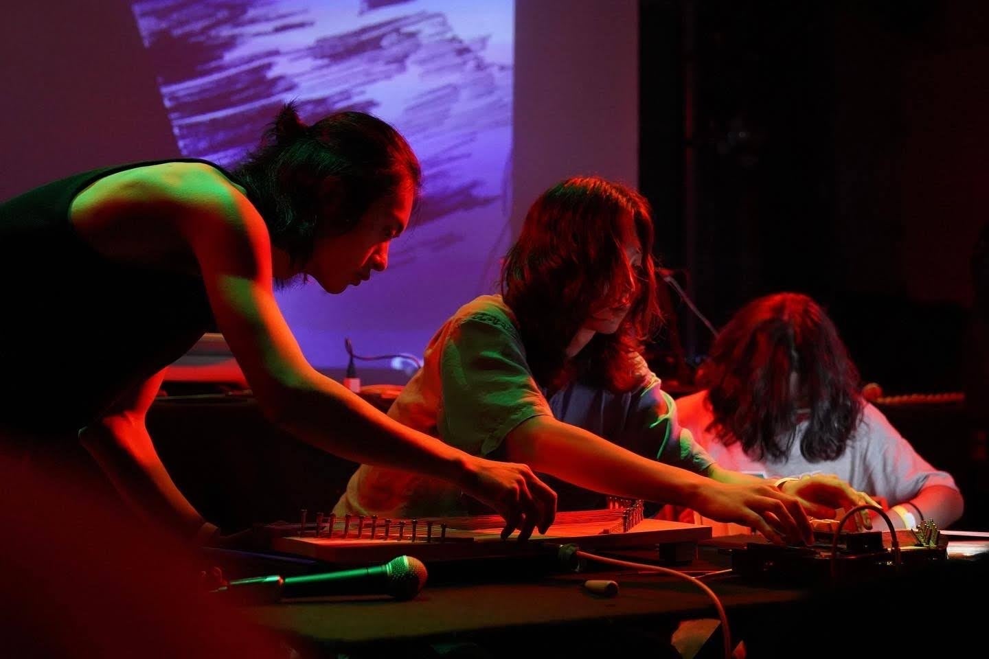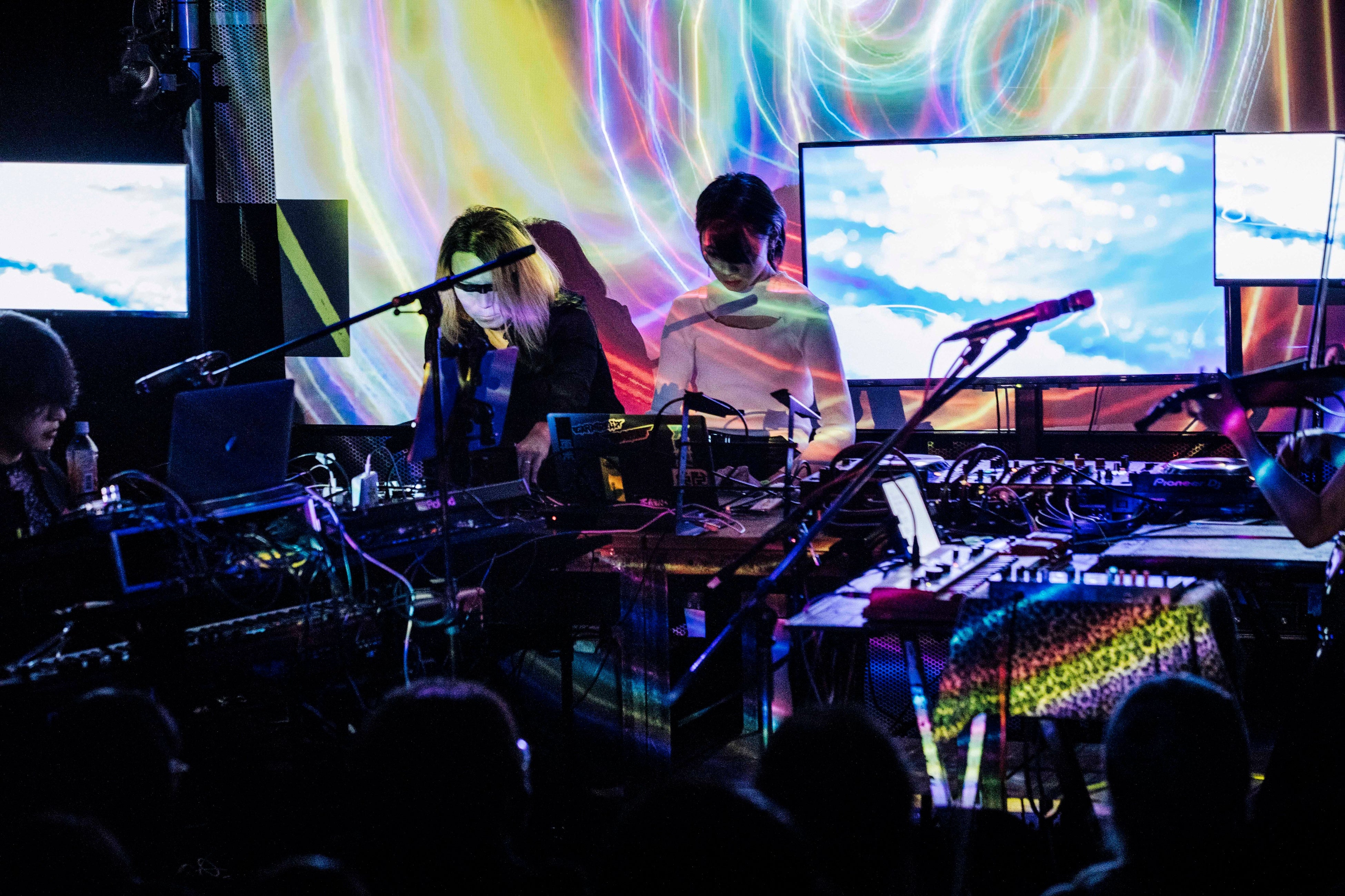 立花ハジメ(Sax, TR606 and Speak & Spell)、momo(Keyboard)、hina(Snare)