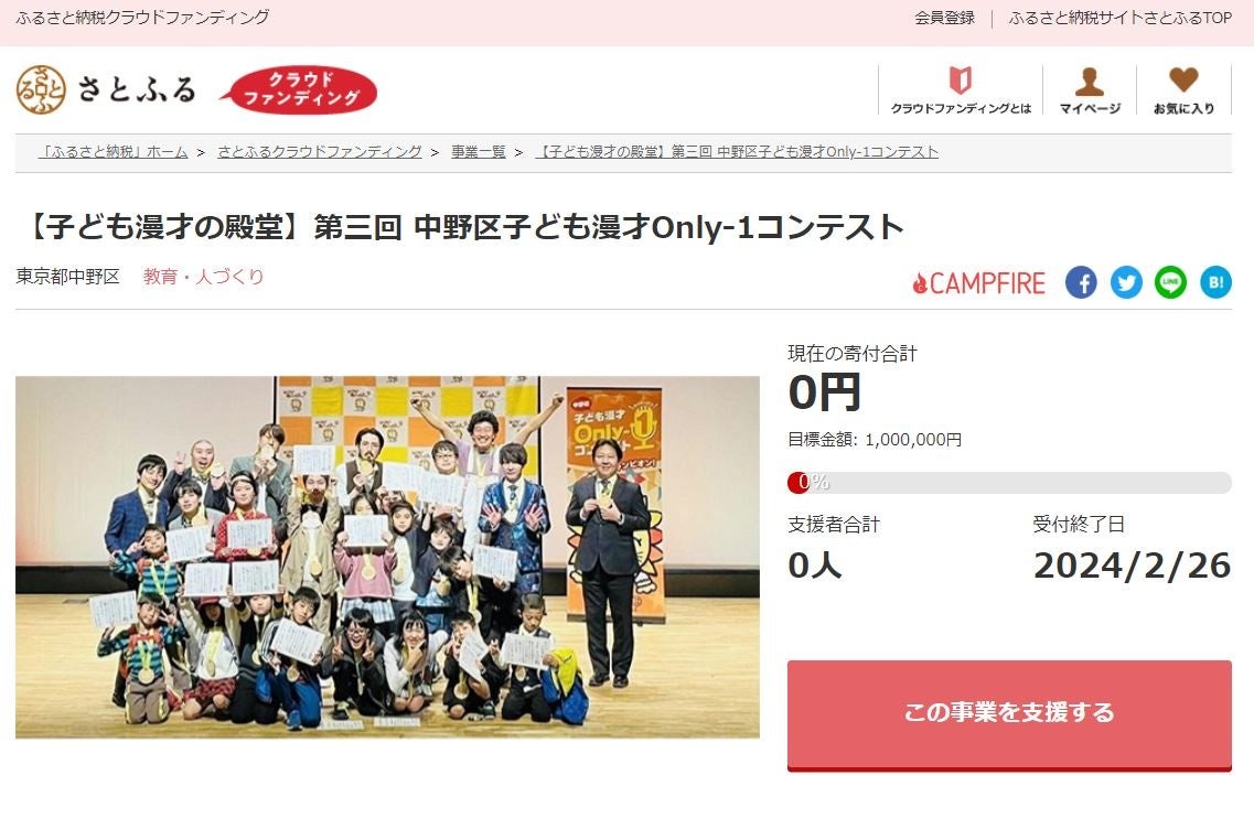 「中野区子ども漫才Only-1コンテスト」にご興味をお持ちいただきましてありがとうございます。