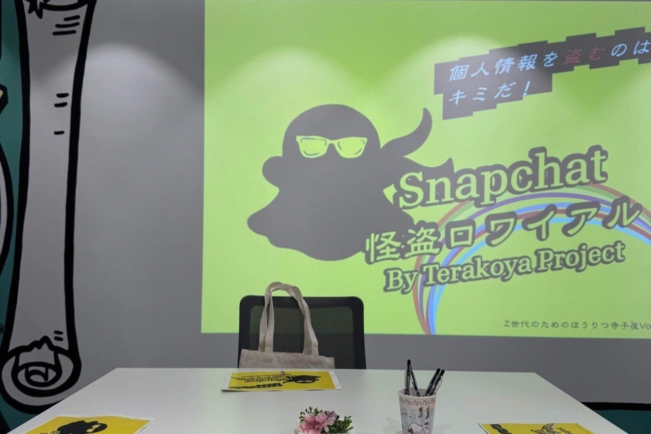 当日は、黒タイトワンピで女怪盗に扮した小倉早貴が、『Snapchat怪盗ロワイアル』というゲームを開催しました。参加者自身が個人情報を盗む側となってミッションに挑戦していく、斬新な企画です。ネット上の権利侵害は4割がプライバシー侵害となっており、SNSの利用数が伸びる中で若者にむけた啓発活動の強化が大きな課題となっています(「令和4年における「人権侵害事件」の状況について」、法務局人権擁護局、2023年)。そこで、saki行政書士事務所は実際にSNSからも個人特定調査を行っているアステル探偵事務所とタッグを組み、「SNSストーカーはどんな手口を使うのか」、「一番高く取引される個人情報は何か」など普段耳にすることのない個人情報売買の実態を分かりやすく伝えていきました。