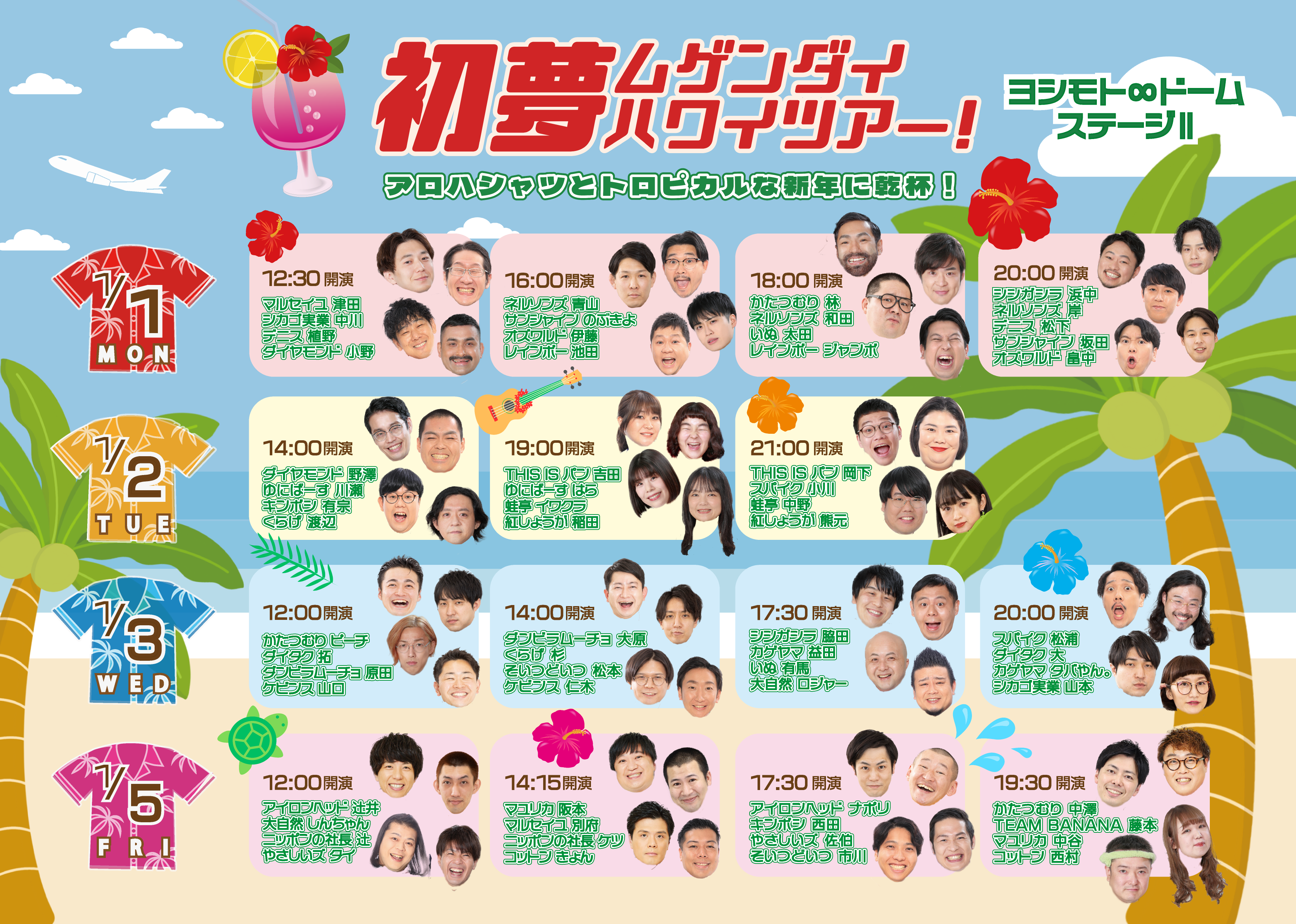 1月1日(月)~1/3(水)、1/5(金)の期間はヨシモト∞ドーム ステージⅡがハワイに大変身!