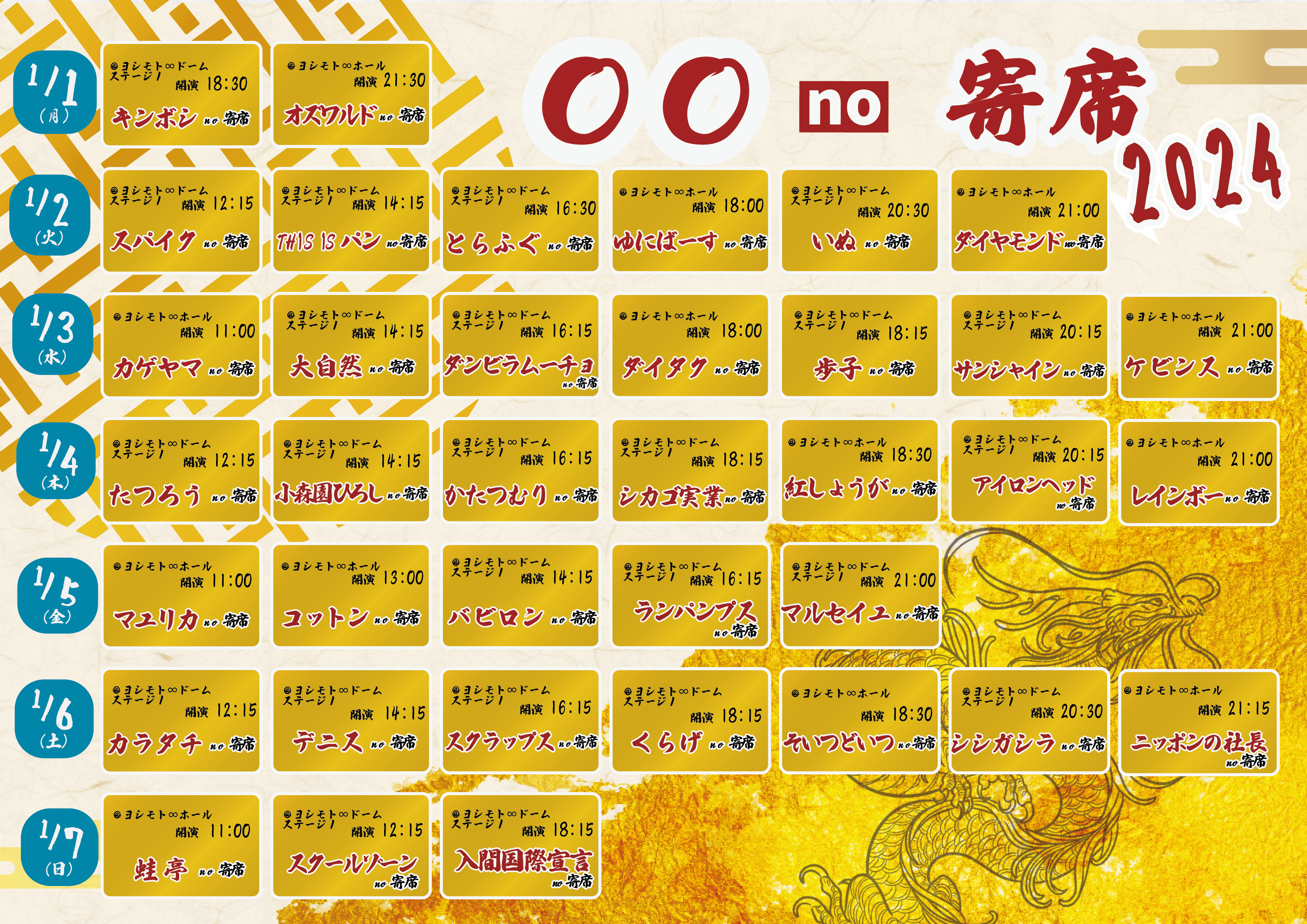 1月1日(月)~1/8(月)までは芸人が自ら呼びたい芸人を集めてネタライブを主催する正月恒例企画『no寄席』シリーズ!