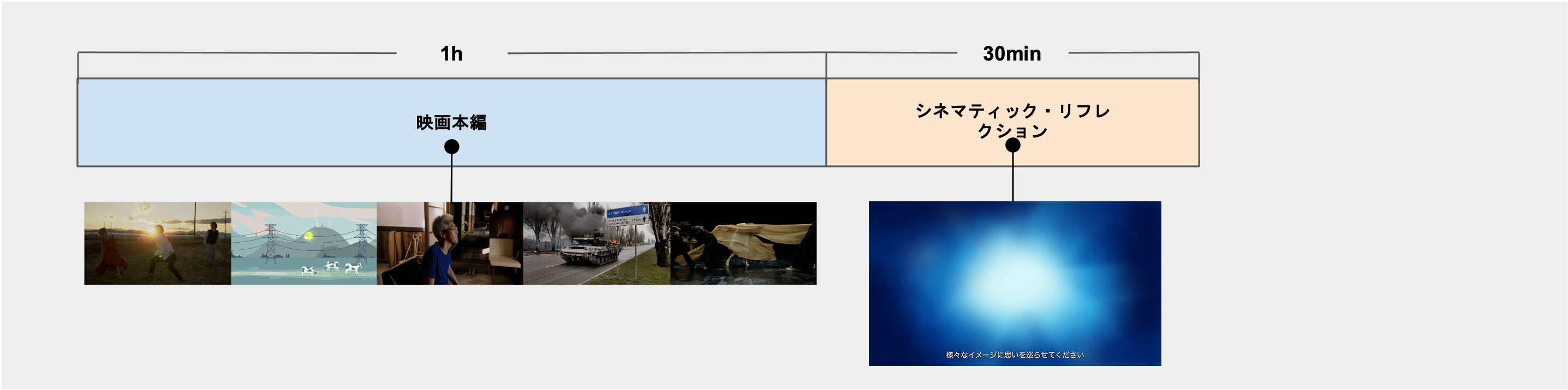 映画による体験を感覚的に捉えることで、自分自身が本当に求めていることや、未来のオルタナティブな可能性に気づくことができます。全国各地に本作を広げていくことで、街の中で様々な対話が生まれる場を創出していきたいと思います。※シネマティックリフレクションのパートは上映劇場により付随しない場合があります。