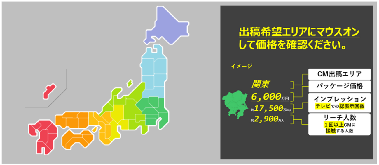 (※3)掲載されている数値は、すべて15秒CMを想定したシミュレーション数値です。また、本パッケージの適用に当たっては、諸条件がございます。詳細はお問い合わせください。