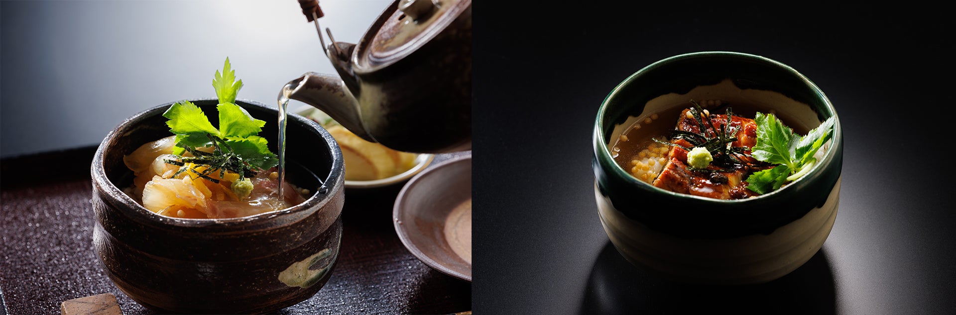 鯛の淡い味わいや甘みを活かす鯛茶漬けと、うなぎの旨味を凝縮したひつまぶしお茶漬けです。