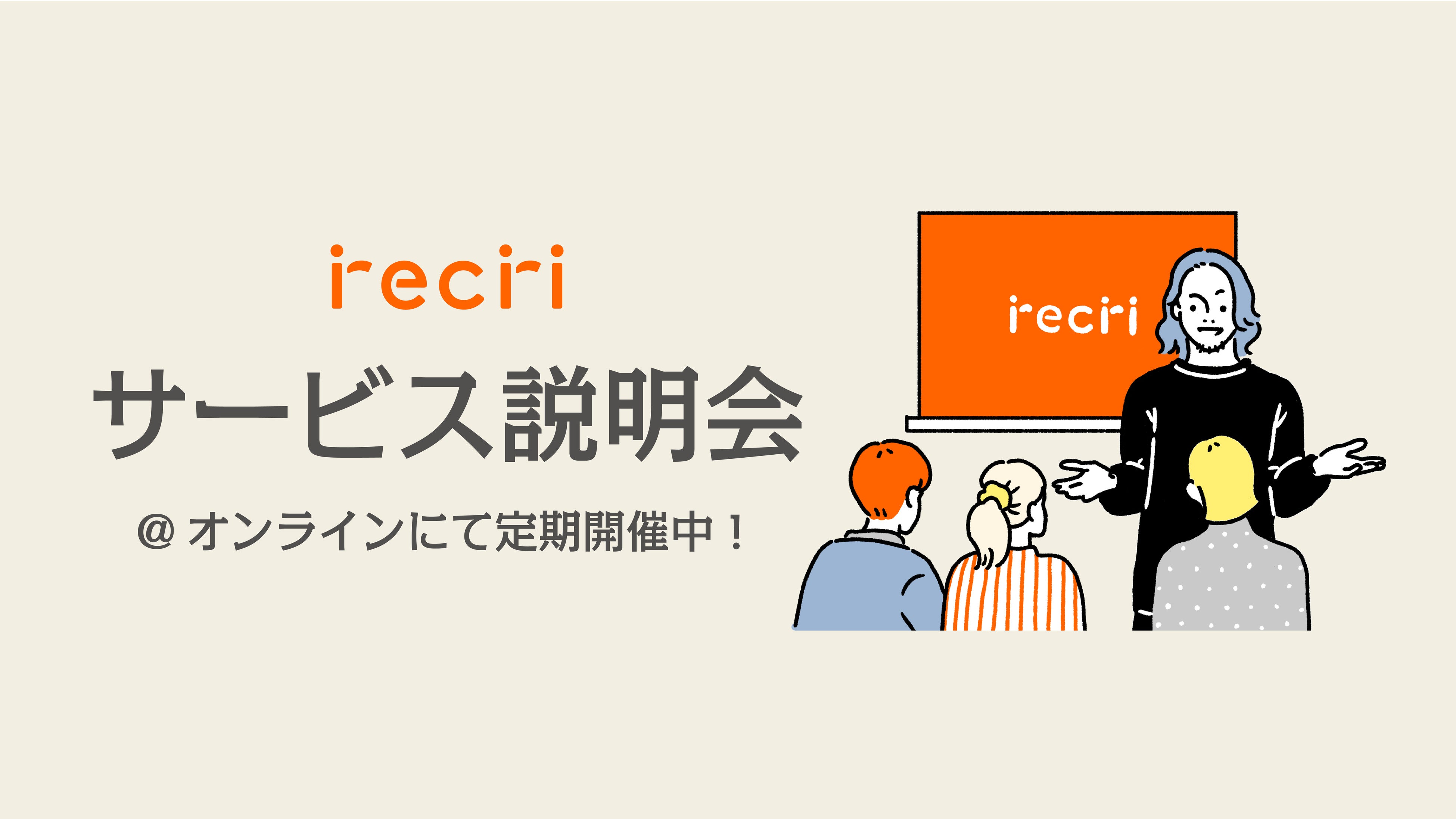 recriのサービス内容や体験をご説明する「recri説明会」をオンラインにて定期開催中です。ご登録を迷われている方は、ぜひ一度ご参加ください。詳細はrecriWebサイト(https://subscription.recri.jp/)より