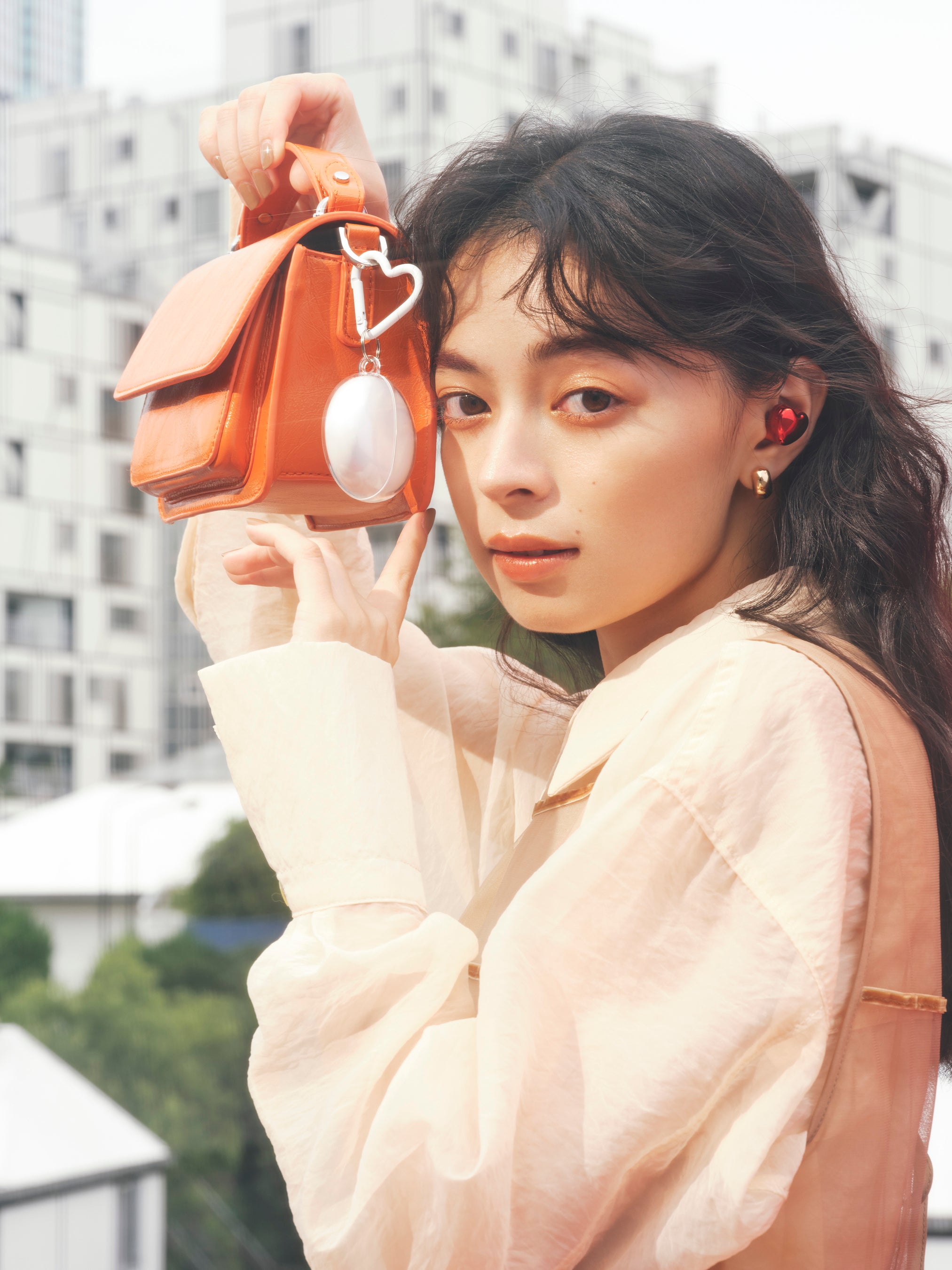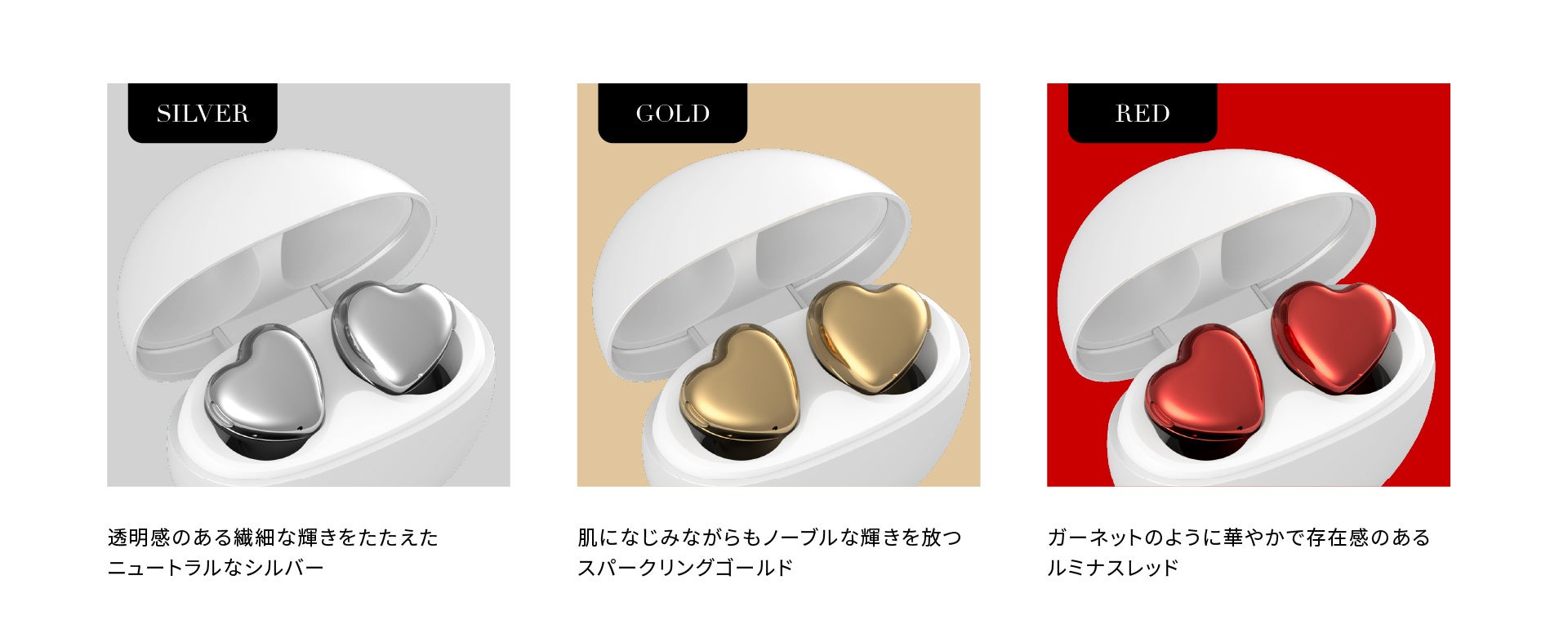 甘すぎず洗練されたハートのシェイプ、肌になじみつつ華やかさを演出するカラーリング、そしてジュエリーのように上品な輝きをたたえたイヤホンは、フェミニン・コンサバはもちろん、カジュアルやストリートなど、あらゆるジャンルのファッションにマッチ。